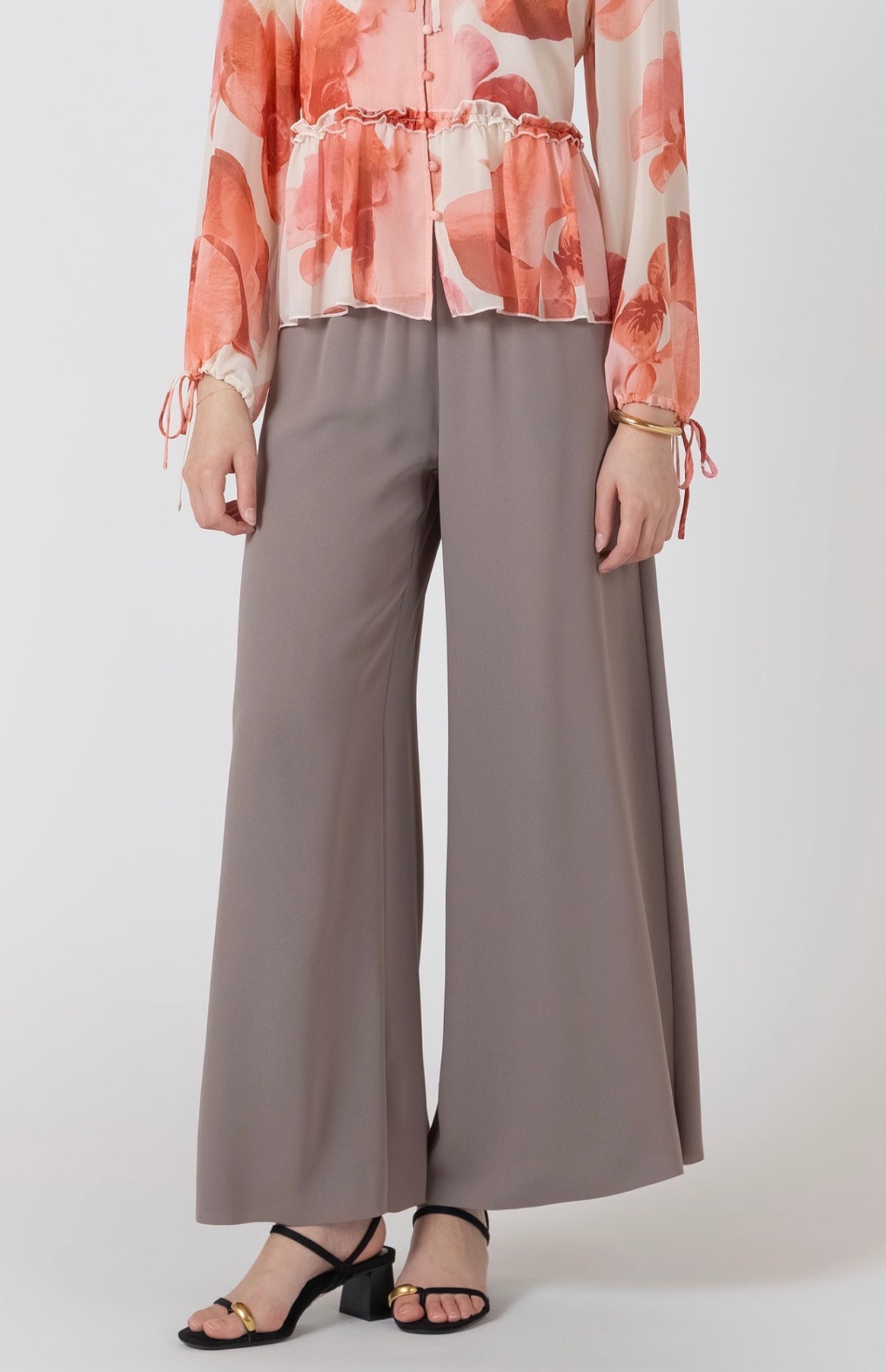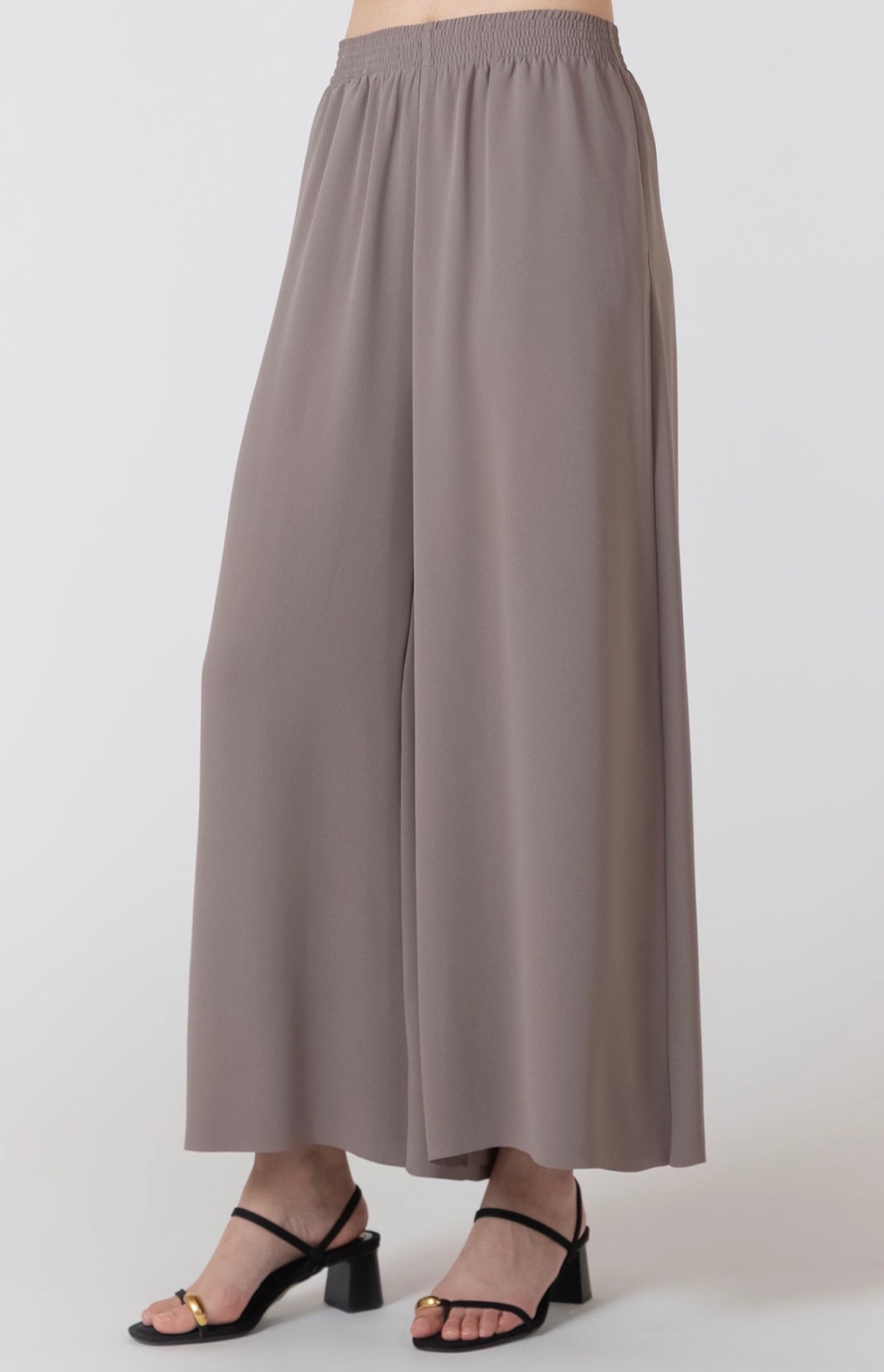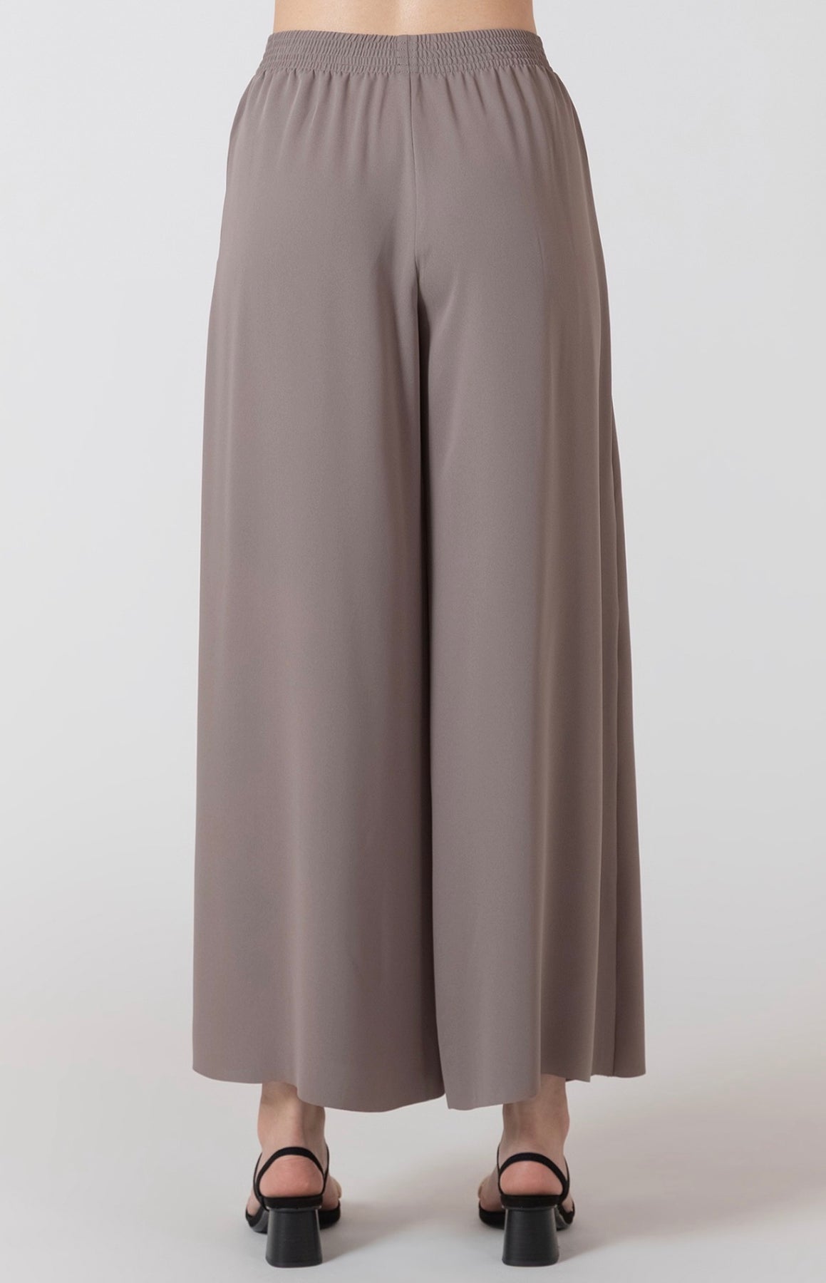 Flowy taupe wide leg pants with elastic waist