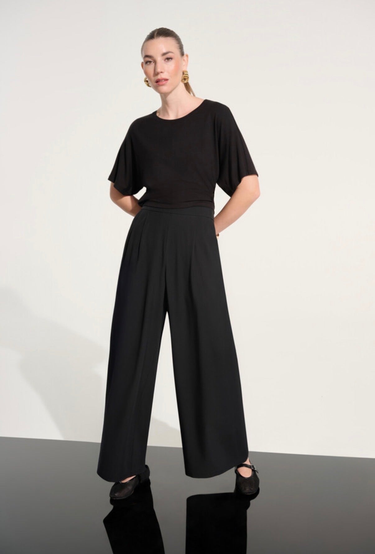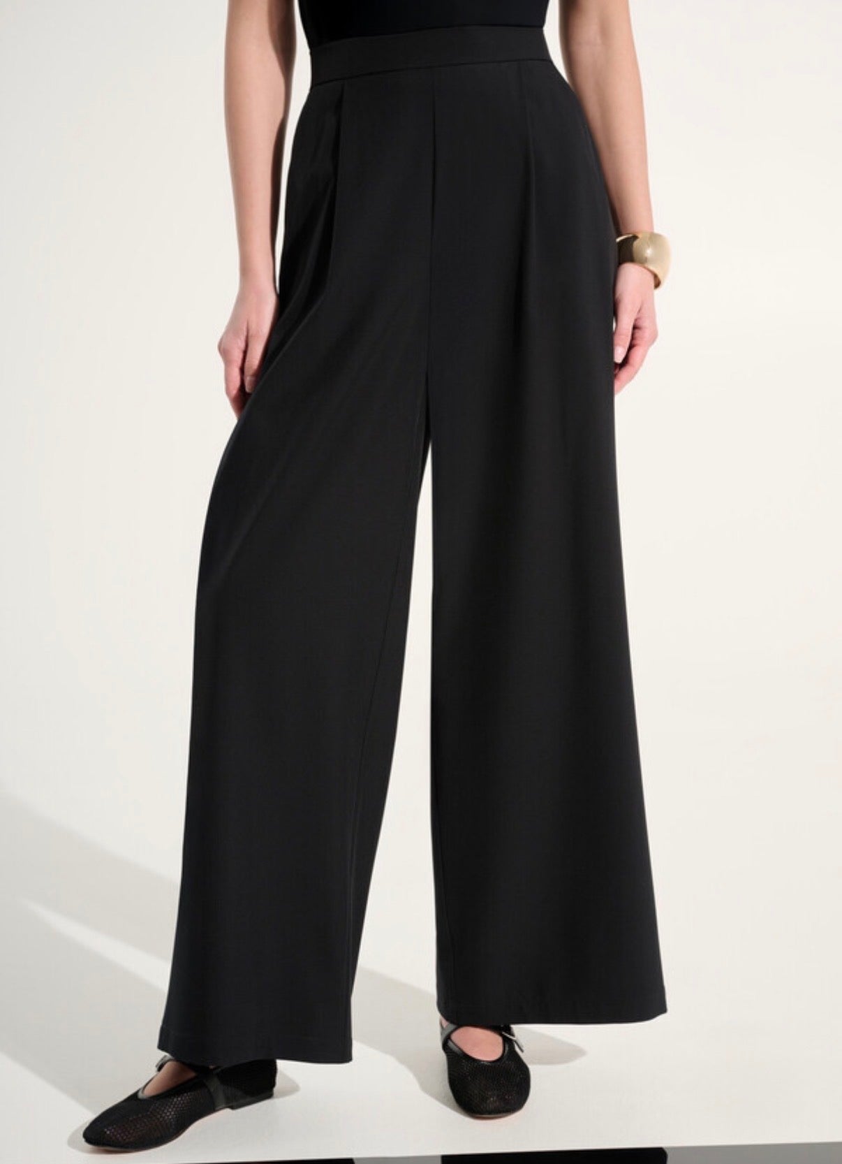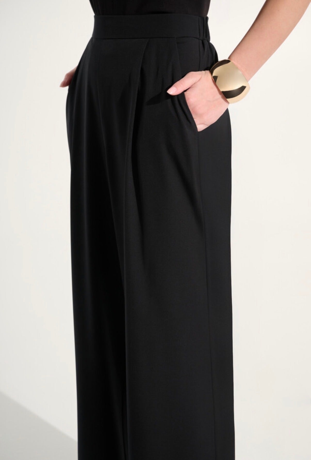 Introducing the Joseph Ribkoff trousers that blend style and comfort effortlessly. These mid-rise, wide-leg trousers are full-length, offering a sophisticated pleated design perfect for any casual or office setting. With a plain pattern and a minimalistic, business-friendly style, these versatile trousers are a must-have for those looking to enhance their wardrobe with timeless elegance.