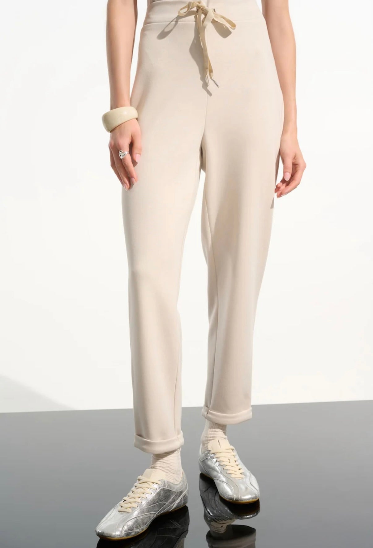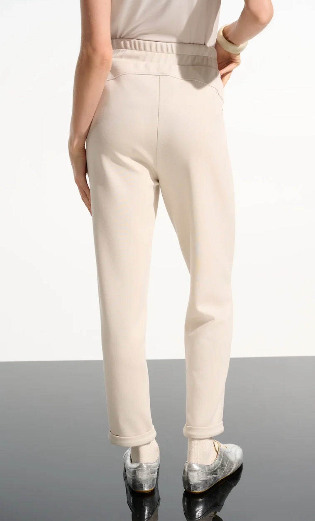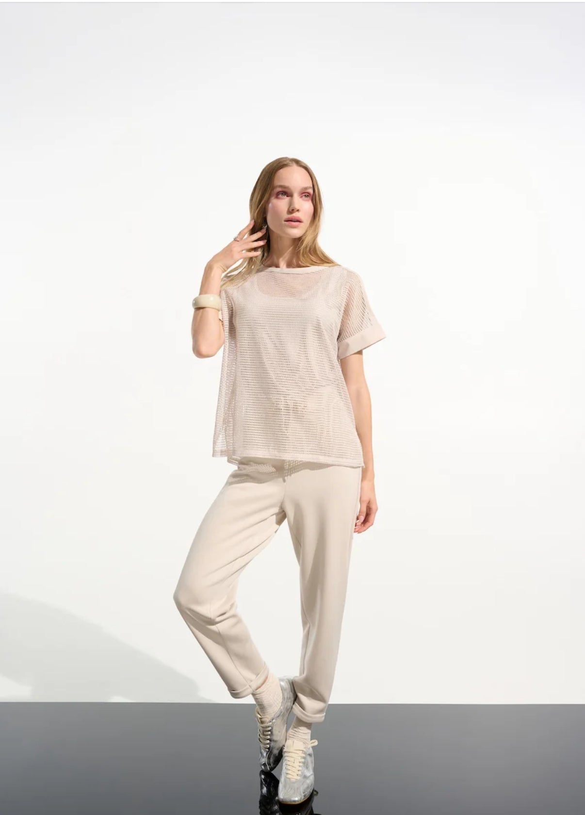 Light and breezy with a playful twist, this recycled georgette tunic features a dotted print, a refined stand collar with a front slit, and three-quarter puff sleeves for an effortless silhouette.