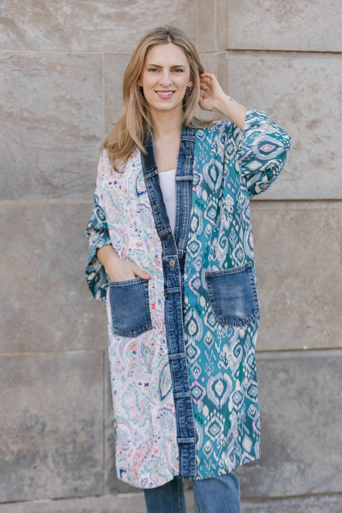 Our #1 bestselling cardigan, made of upcycled vintage denim, is a must addition to your wardrobe. Crafted from eclectic mix of fabrics, this lightweight cardigan will keep you warm without weighing you down.