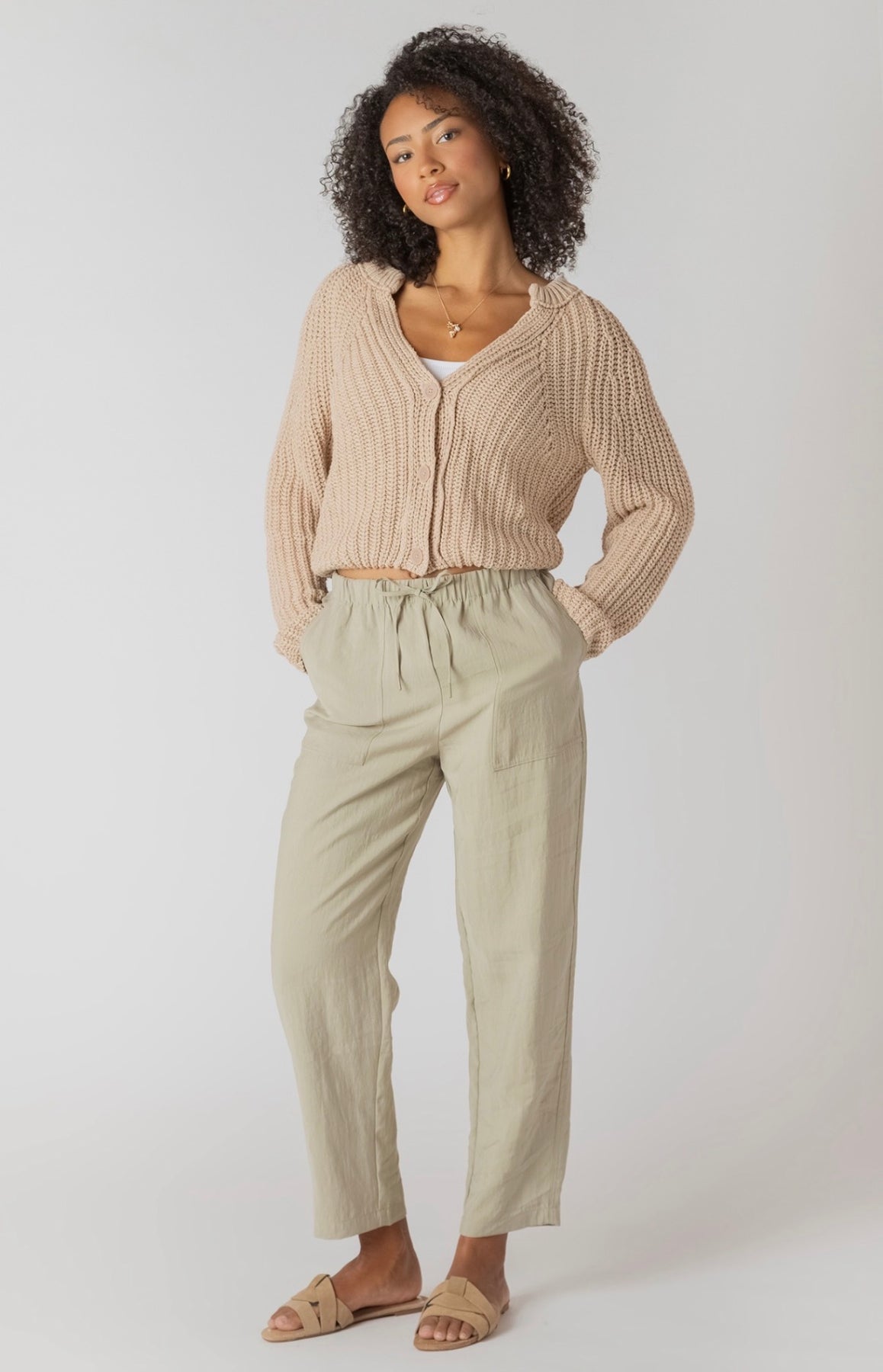 V neck natural knit cardigan