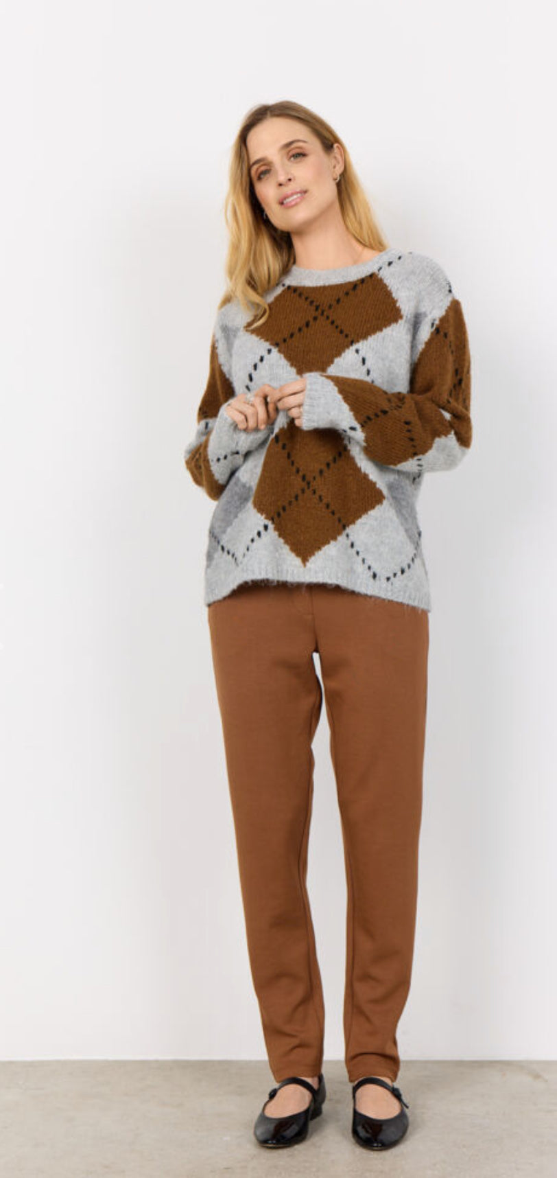 ACACIE 1 Pullover is crafted from 57% Acrylic, 21% Recycled Polyester, 11% Wool, 9% Nylon, and 2% Elastane. This pullover features a cozy round neckline and a classic argyle pattern, offering a relaxed fit. It pairs elegantly with tailored trousers for a sophisticated look or with jeans for a casual, everyday style.