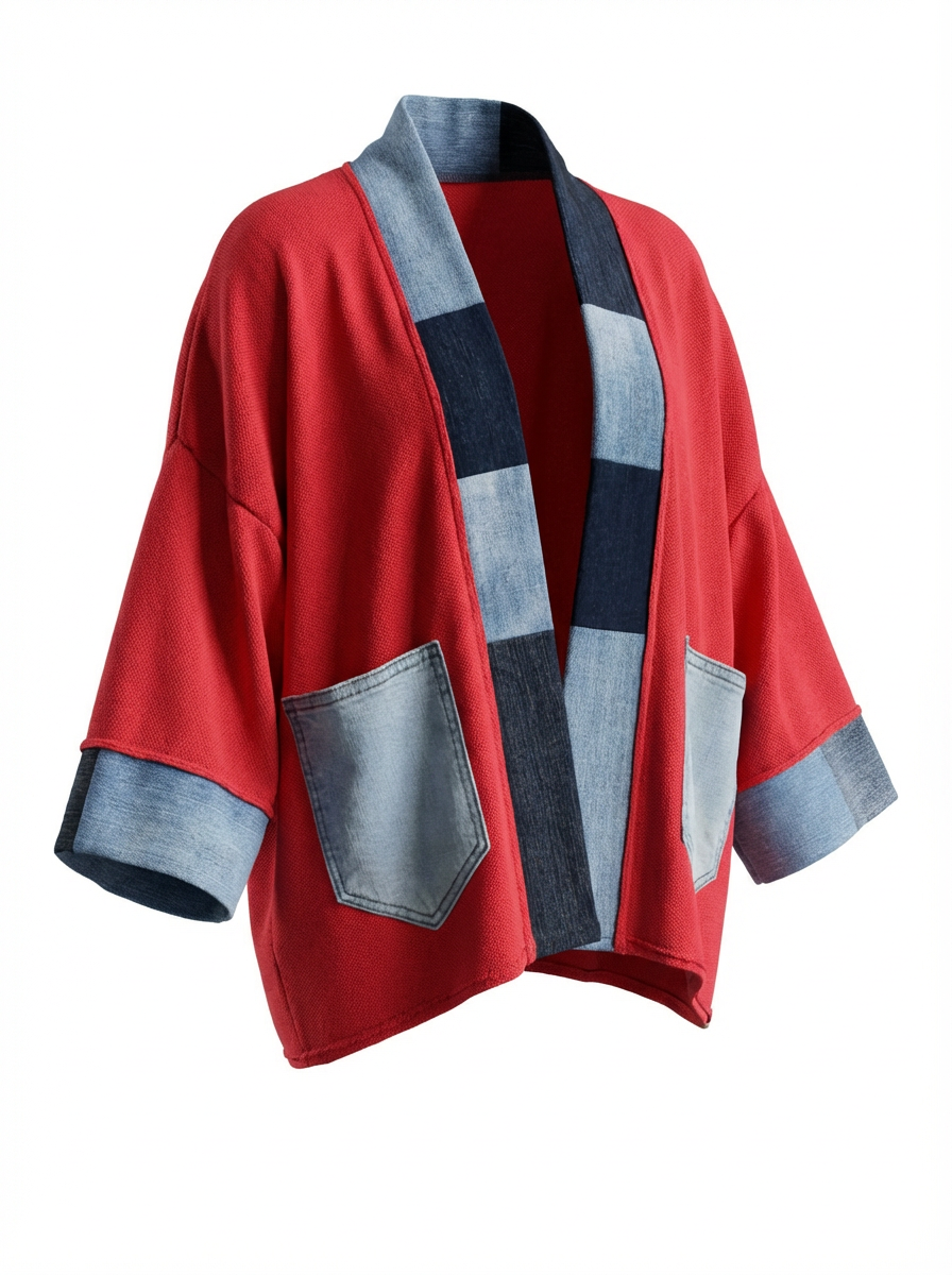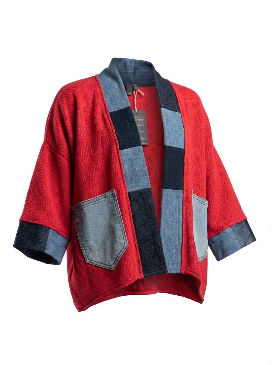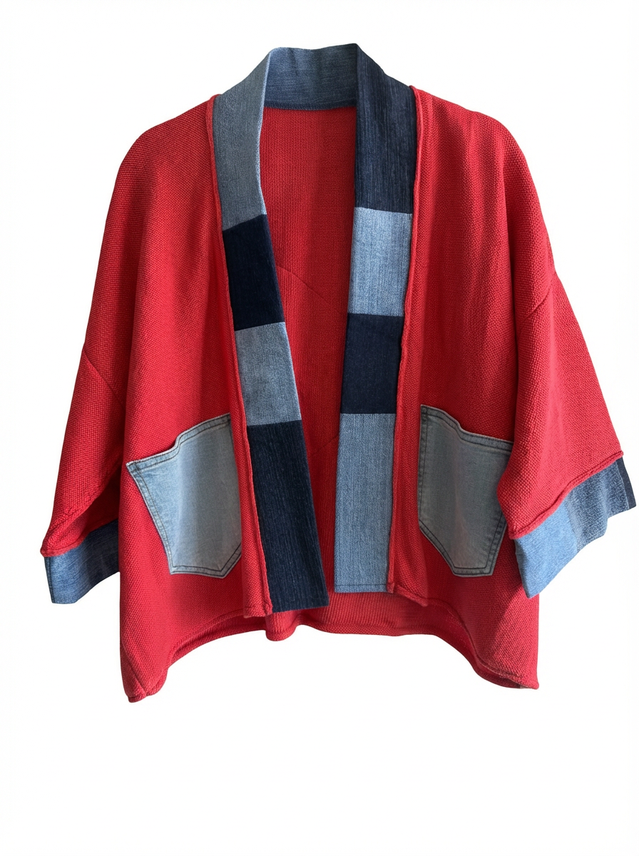 Short Cardi with 3/4 sleeves. Lipstick red.
