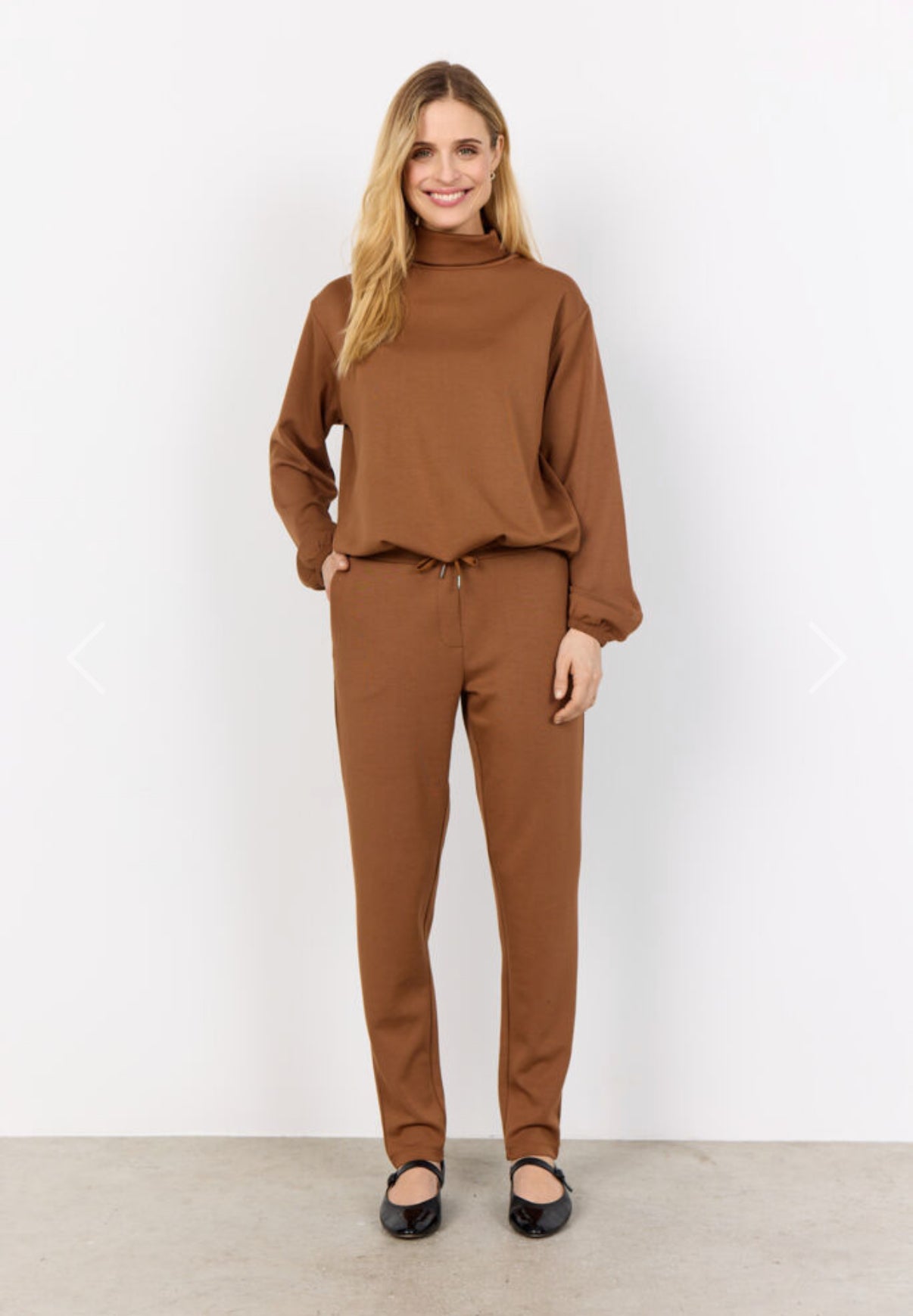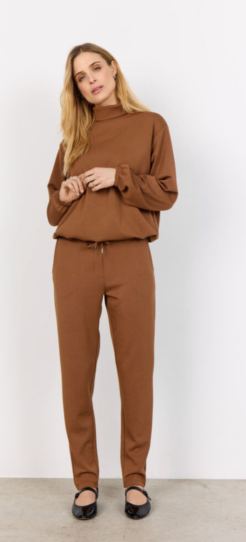 Banu 157 are comfortable sweatpants made from a soft blend of modal, polyester and elastane. These lovely pants have an adjustable waist and a loose fit. Style these pants with one of our matching uppers for a nice homewear look.