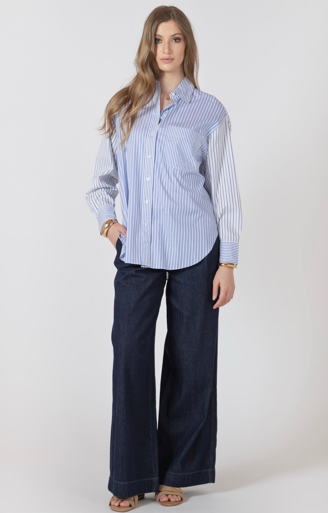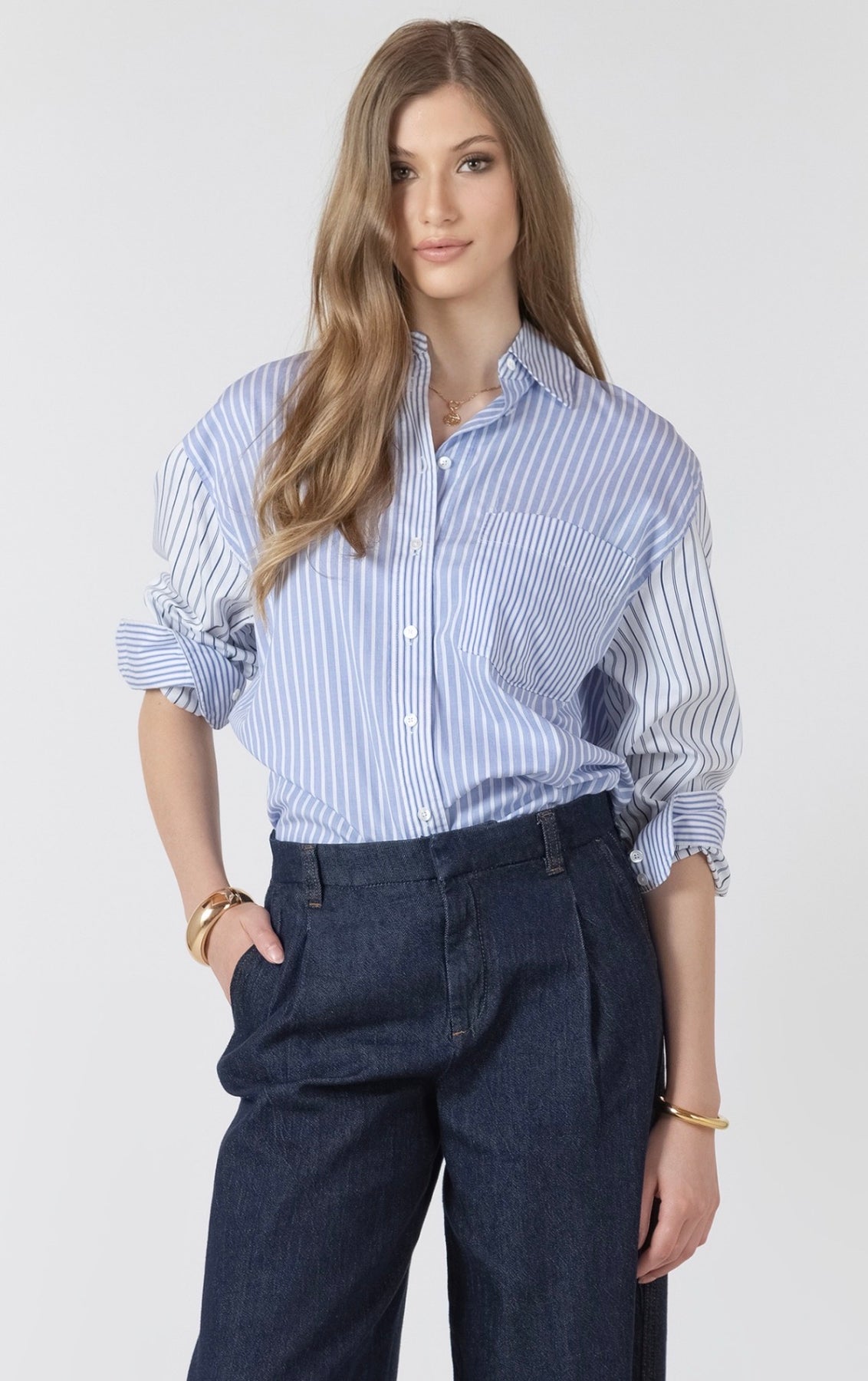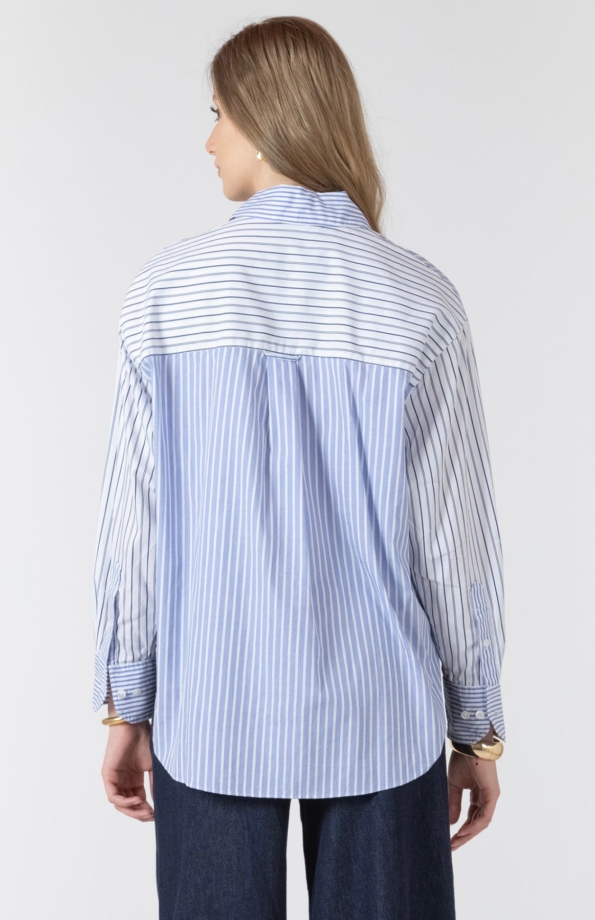 Colour block striped button up shirt