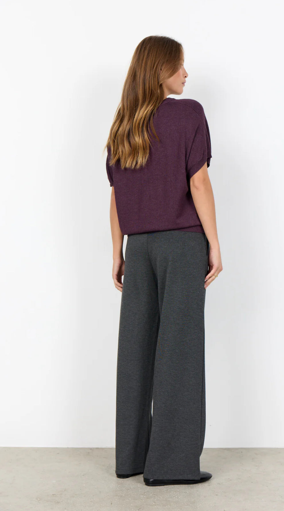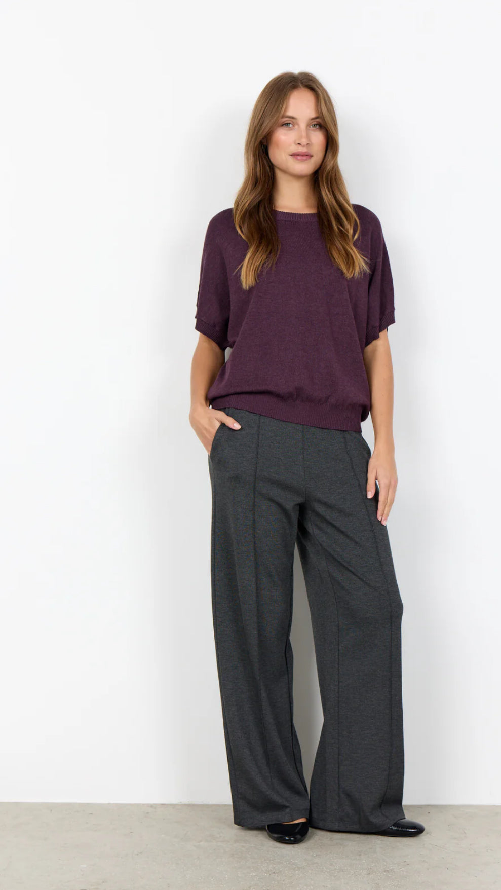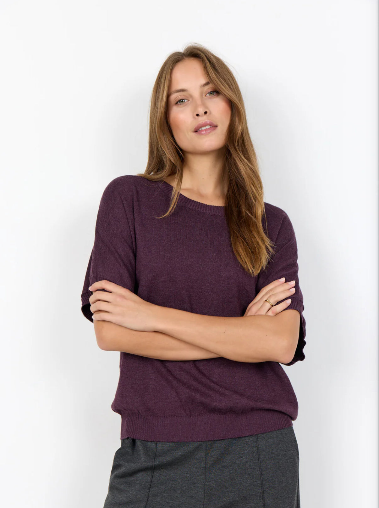 DOLLIE 807 Pullover is crafted from a blend of 75% Viscose and 25% Nylon. It features a classic round neck collar with short sleeves and a ribbed hemline, highlighting its relaxed silhouette. This elegant pullover pairs beautifully with tailored pants or casual jeans for a stylish look