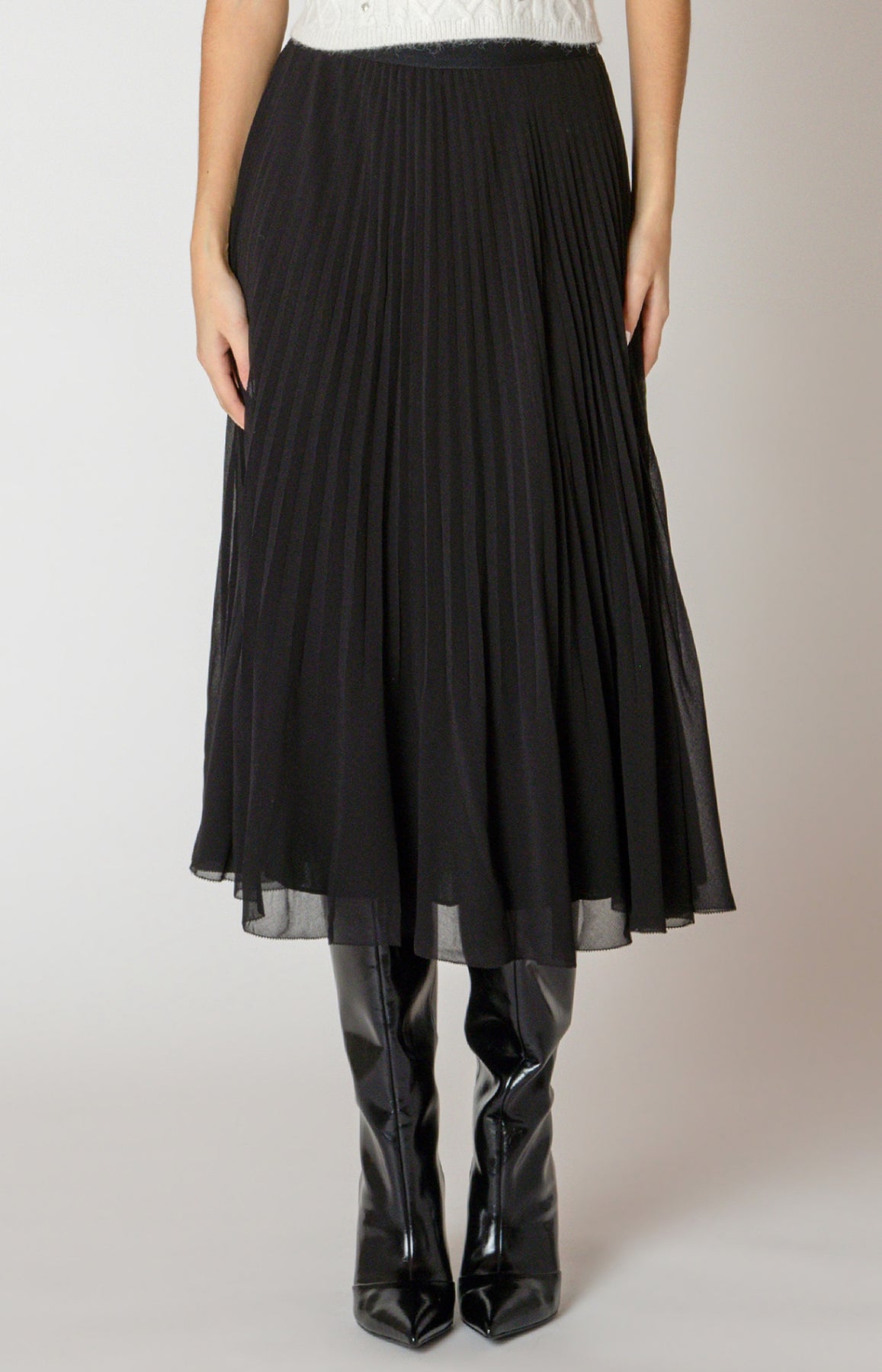 Black pleated midi skirt