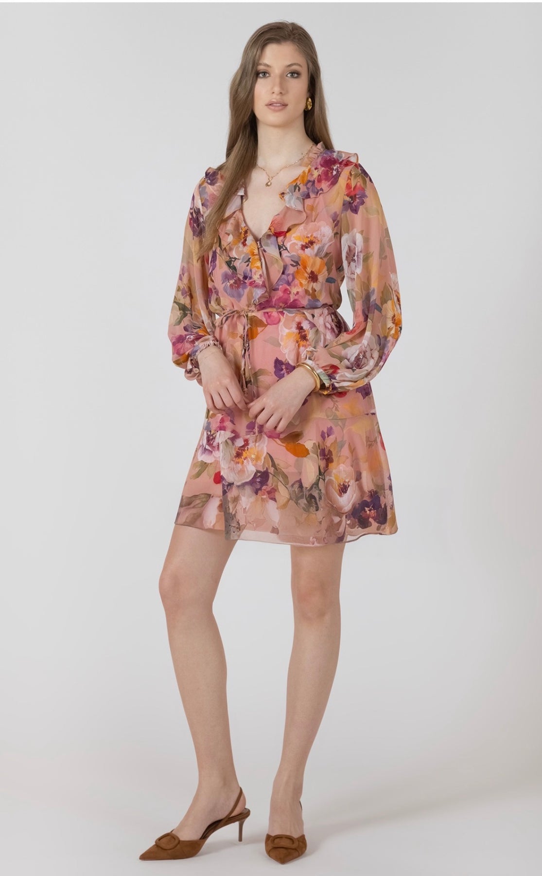 Feminine floral medley print dress