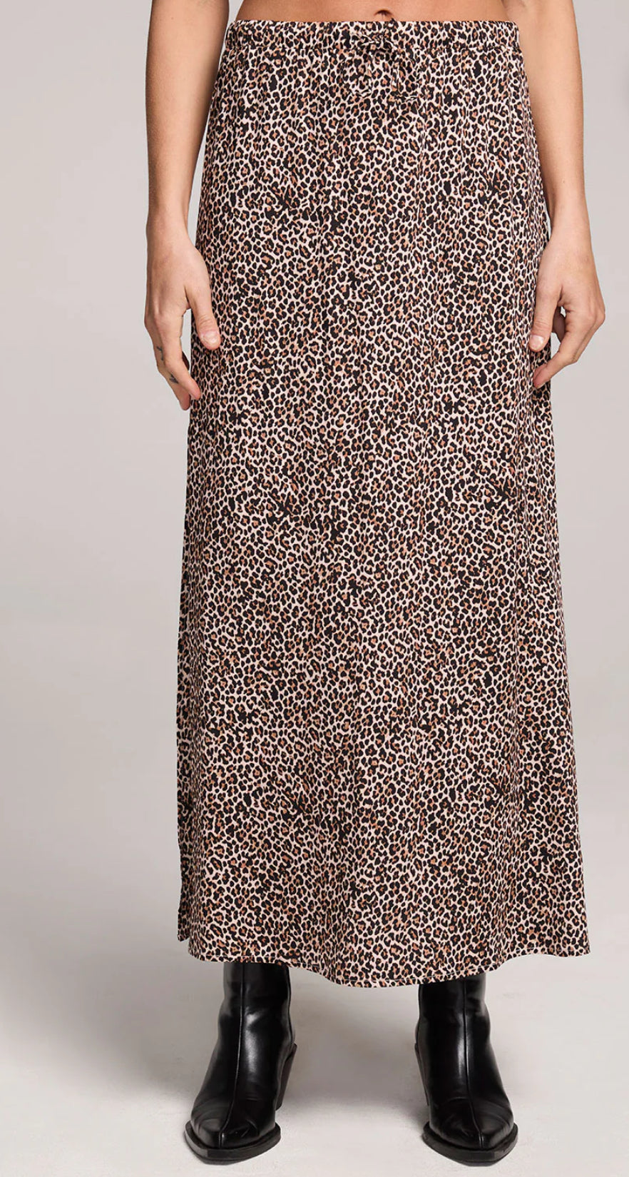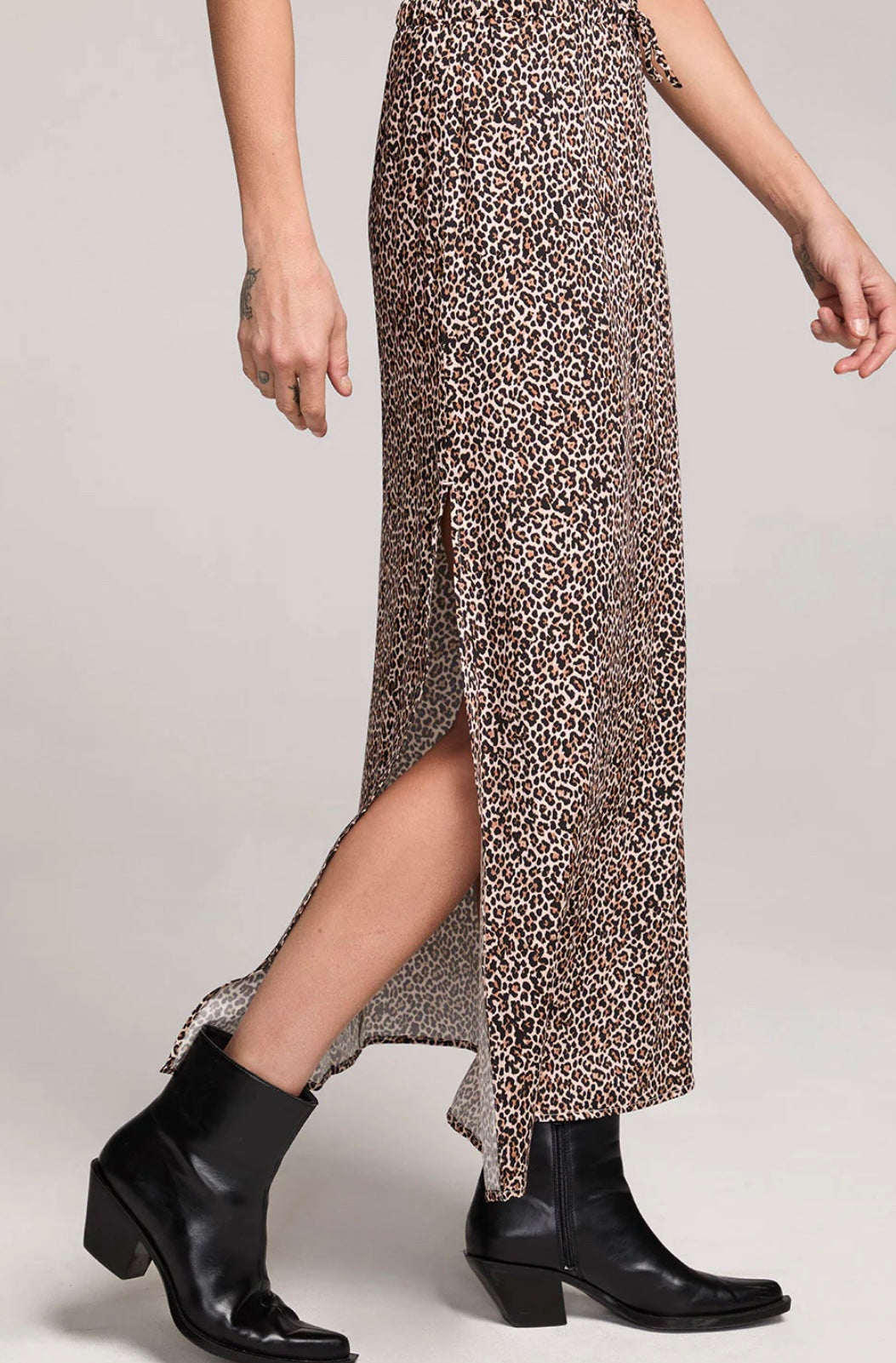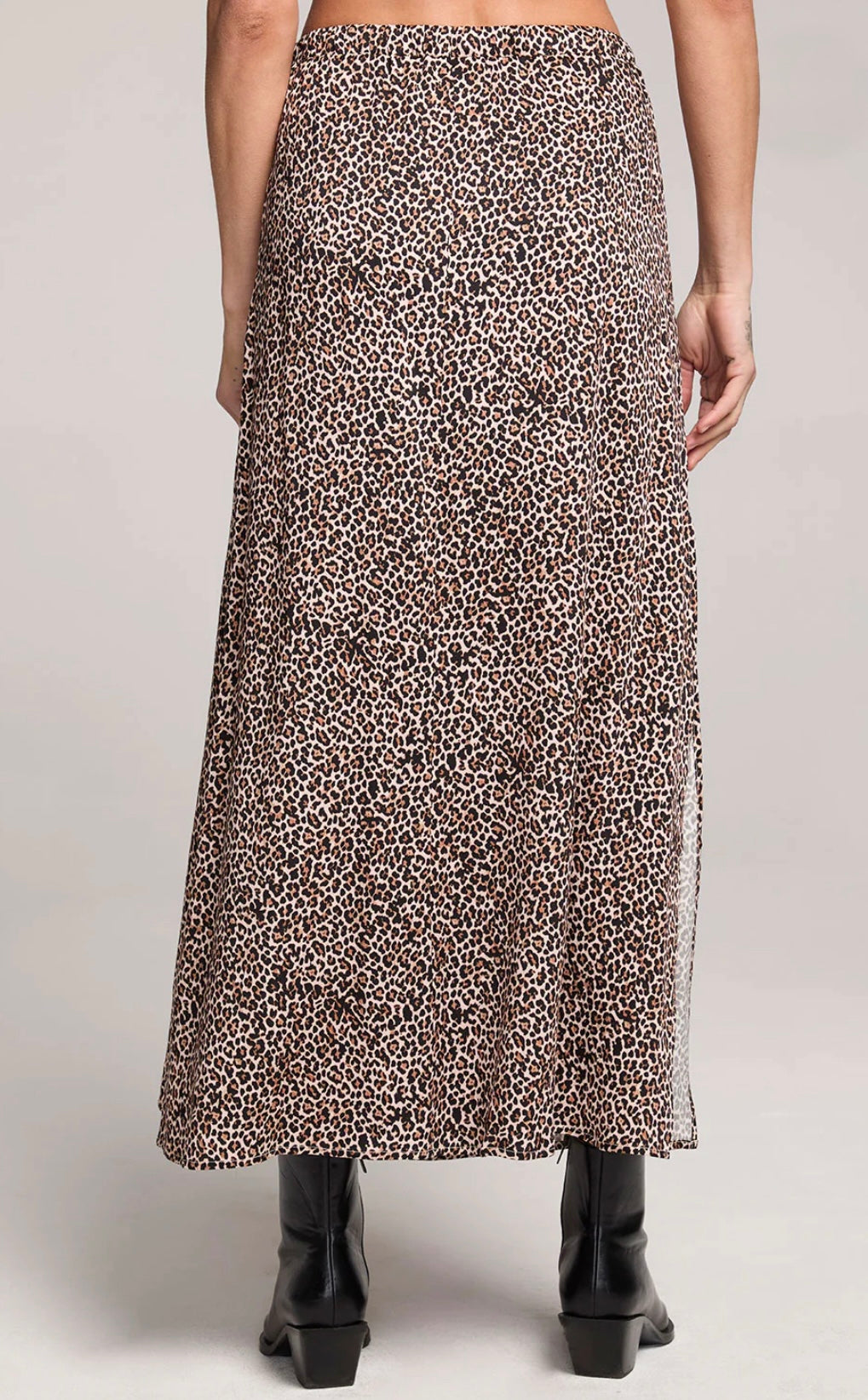 The Seraphyne Leopard Midi Skirt is a timeless piece with a simple silhouette and subtle textured gathering at the waistline for a refined touch.