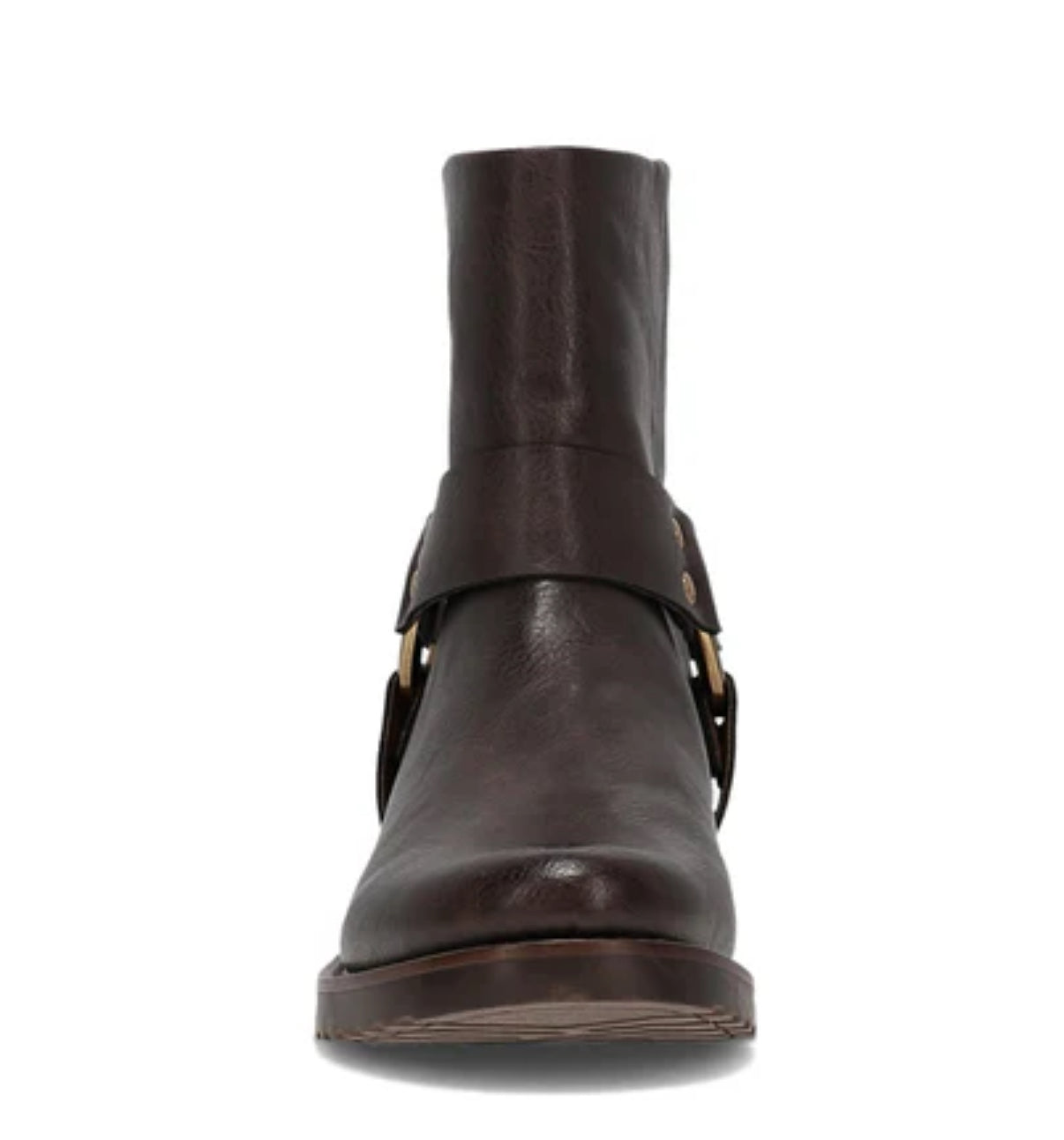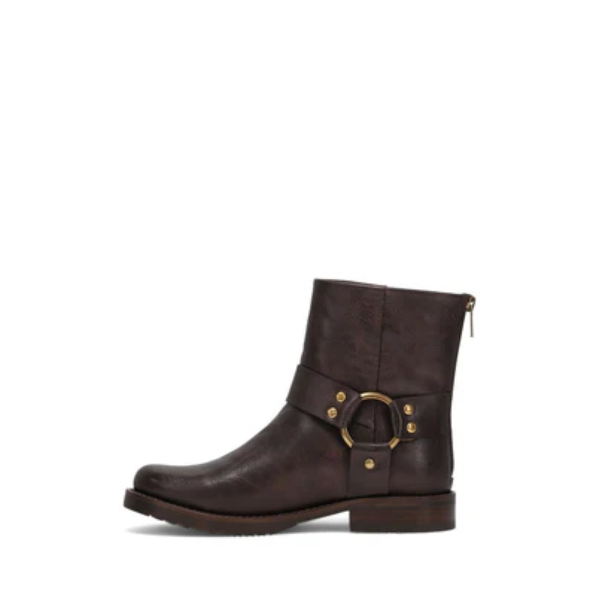 The Chesnee Harness Short bootie is made with antiqued tumbled vegan leather and features metal-harness details, bringing the moto edge. Its cushioned insole and lightweight, flexible sole deliver out of the box comfort, while the back closure and ankle-height shaft make for easy weekday-to-weekend wear.