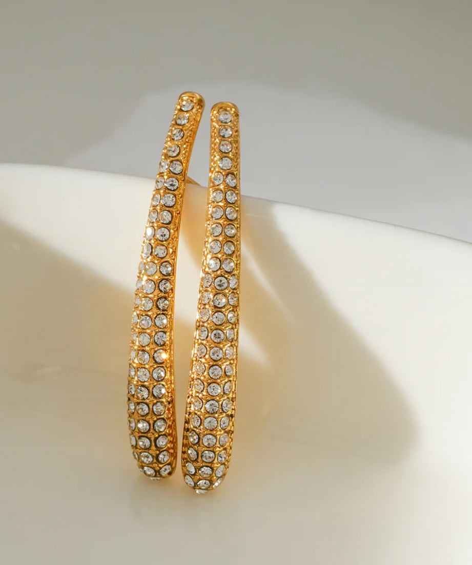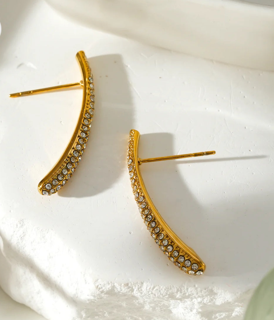 Embrace Effortless Chic: Discover our Curved Pavé Zirconia Shaped Stud Earrings in Gold