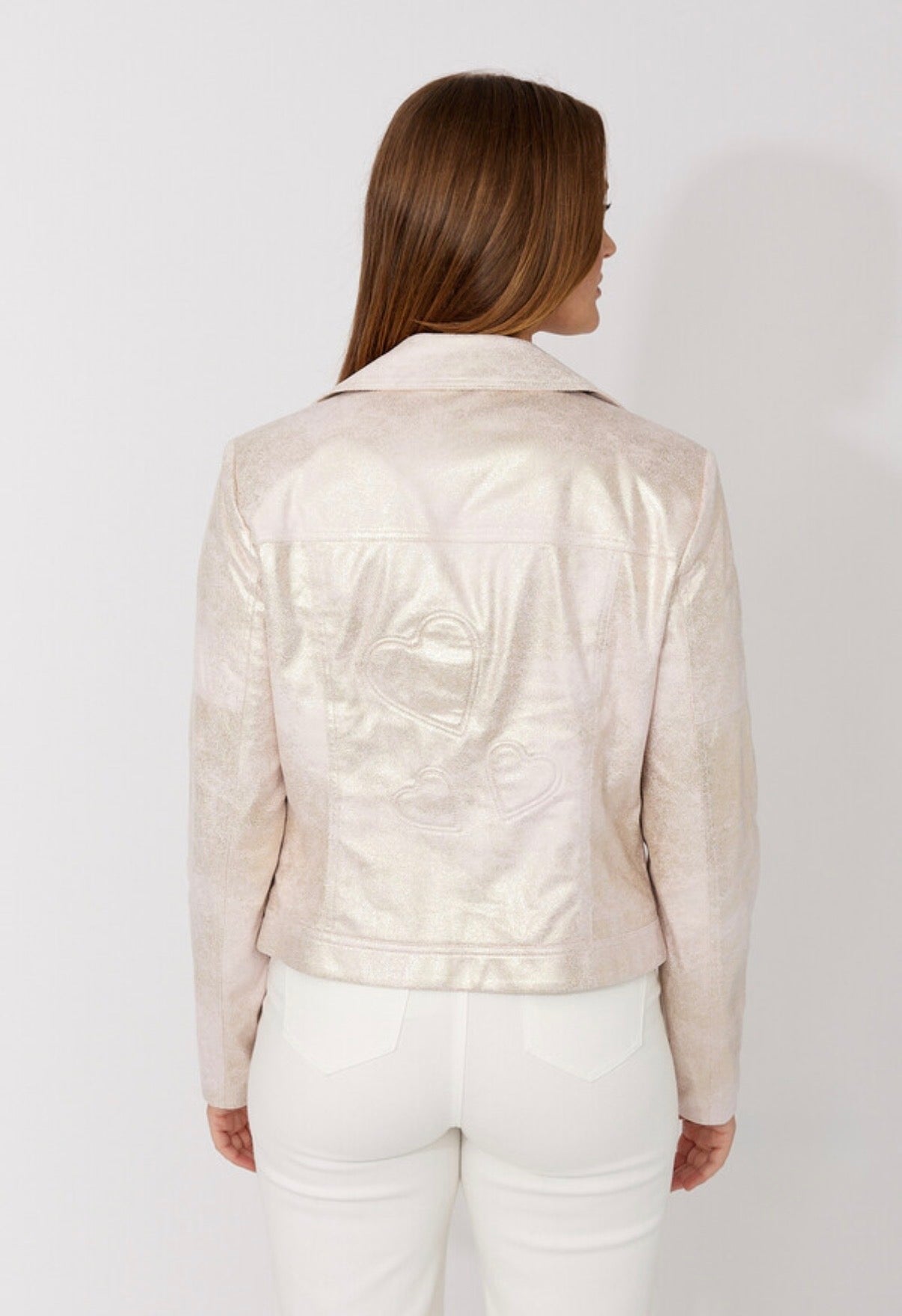 Step out in style with the Frank Lyman Jacket, featuring a chic collared neckline and a hip-length design for a flattering, regular fit. The long, straight sleeves adorned with jewels add a touch of elegance, making it perfect for casual outings or nightouts. With its plain pattern and feminine, edgy vibe, this versatile piece is ideal for everyday wear.