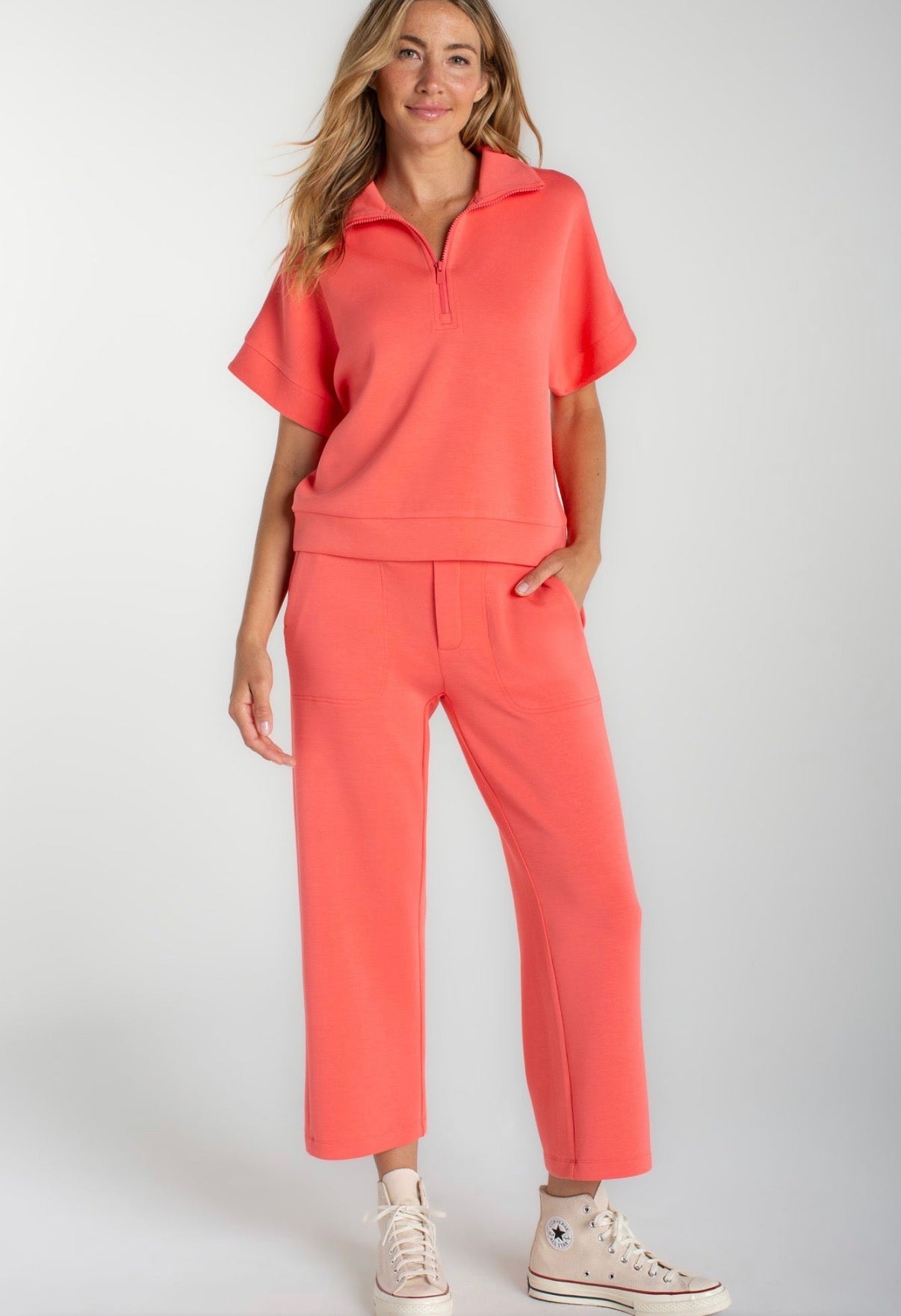 Discover the ultimate cozy luxury with our new half zip funnel popover top made from our ultra-soft Cloud 9 knit. Stay comfortable all day long - perfect for any casual outing or lounging at home.
