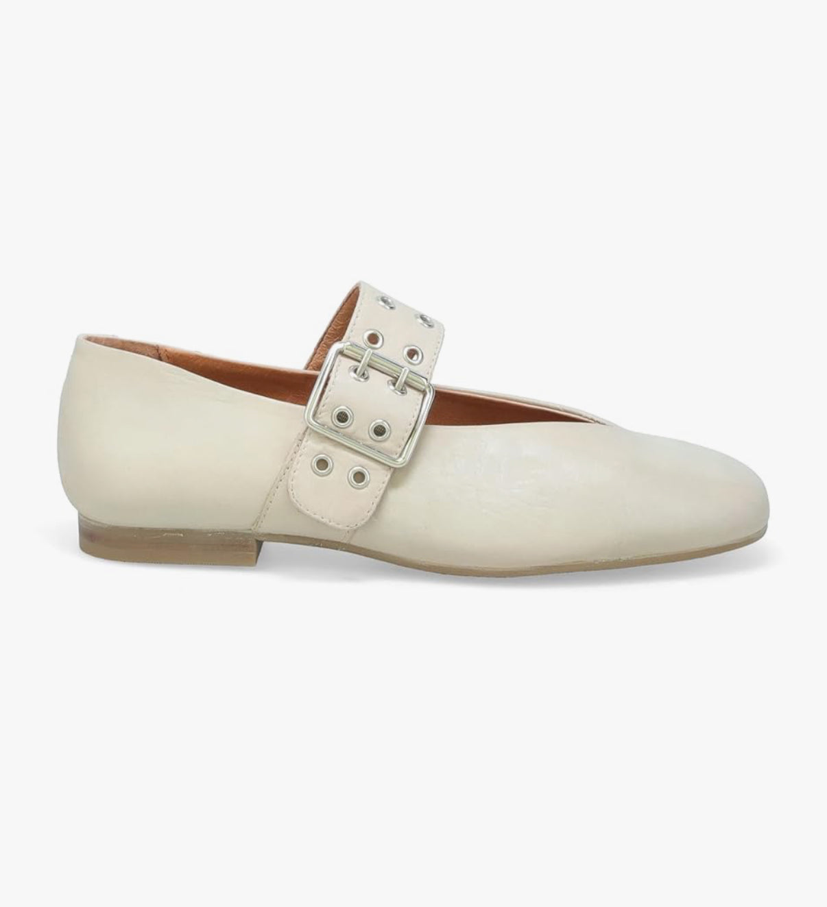 This isn’t your average Mary Jane. With Zephyr's luxe leathers and oversized grommeted buckle, this flat brings serious attitude in a sleek silhouette. Equal parts punk and polished, it’s the pair you slip on when you’re feeling fearless—because basics just won’t cut it.