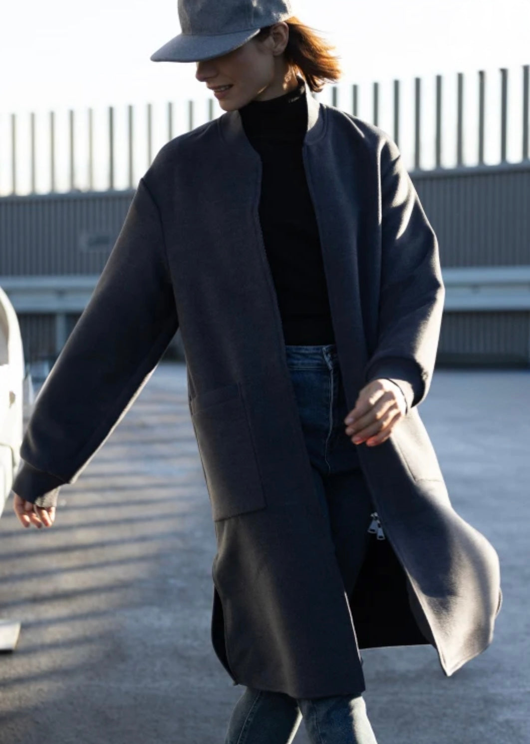 Minimalist and functional! Made from smooth woven fabric, this mid-length jacket offers a straight and cool silhouette. The comfort fit makes it ideal for everyday wear, while the large pockets and ribbed details on collar and sleeves add a sporty edge. A versatile jacket that is both stylish and practical.