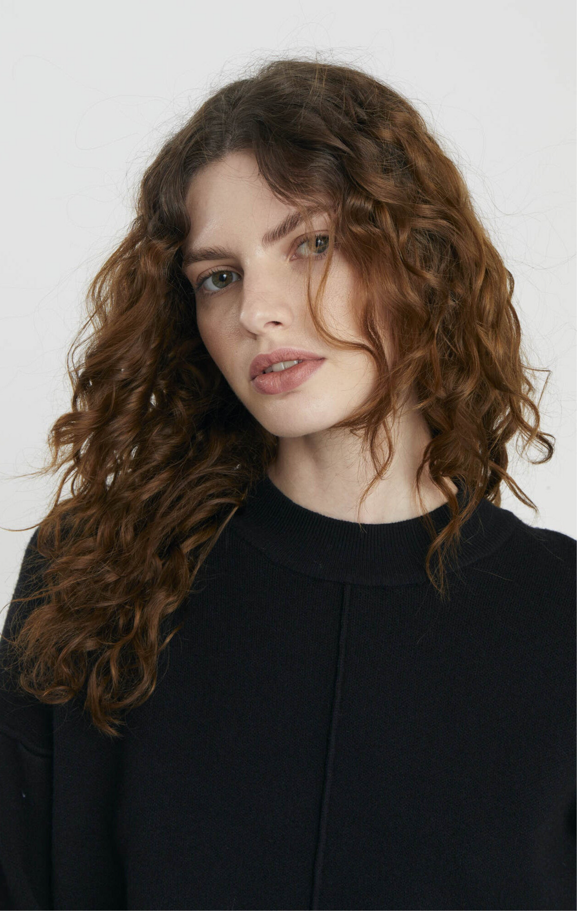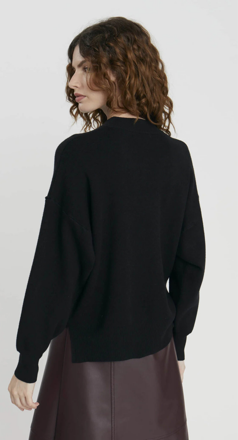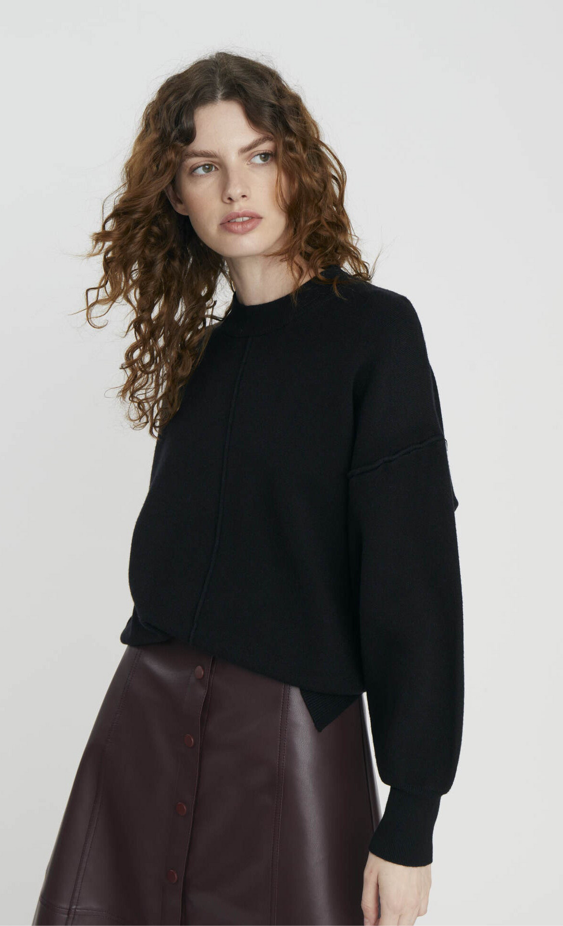 Viscose blend sweater with crew neckline and long sleeves. Detail of visible seams