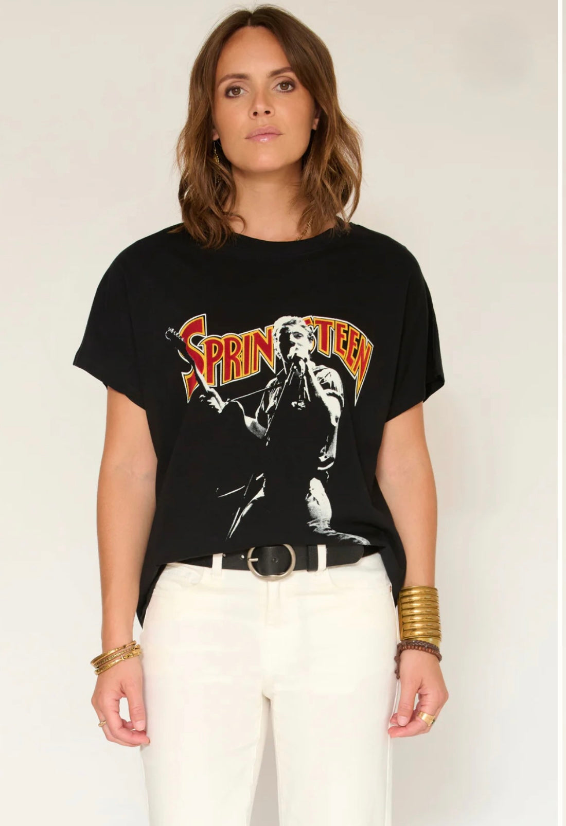 The TAGOFI SPRINGSTEEN BLACK T-shirt is an ideal choice for those looking for a stylish yet comfortable piece of clothing, with a musical touch that will appeal to Bruce Springsteen fans. Its black color, cotton material, and classic cut make it a wardrobe staple.