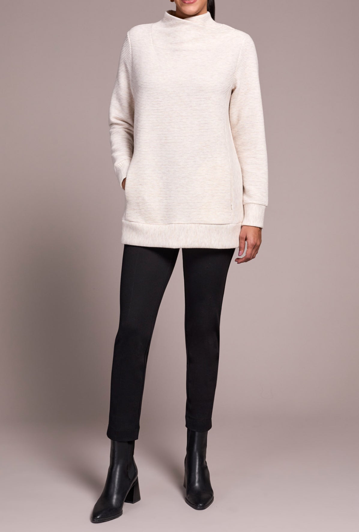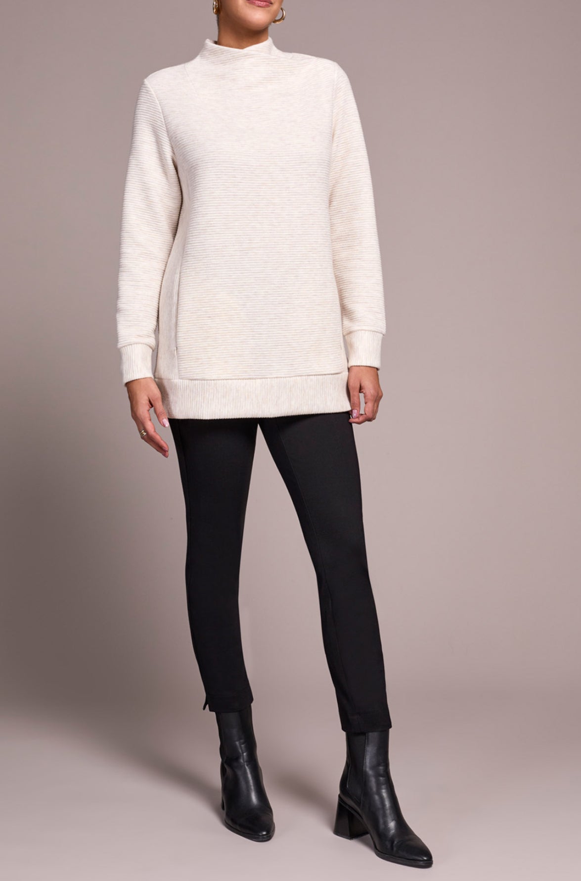Mock neck tunic sweater