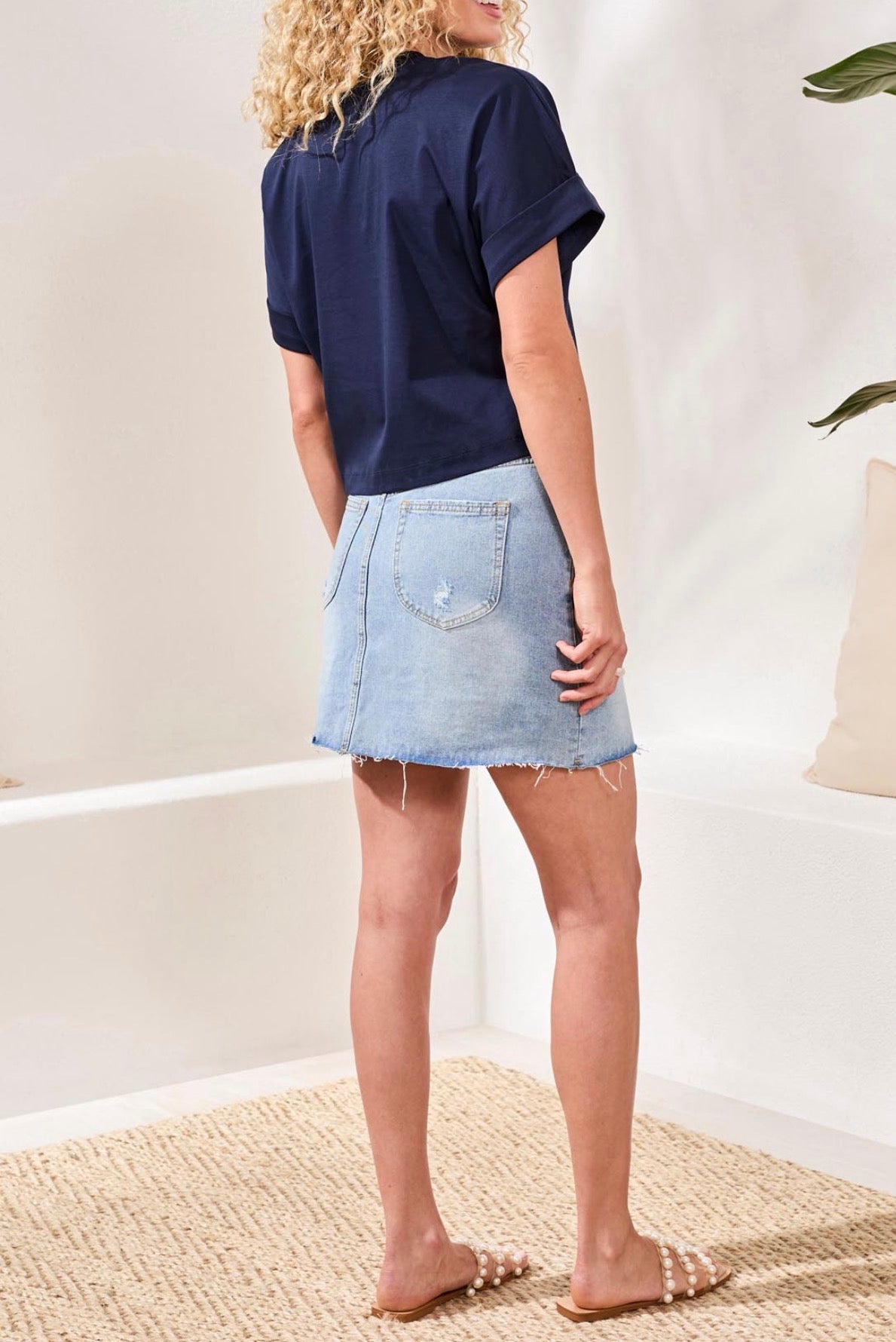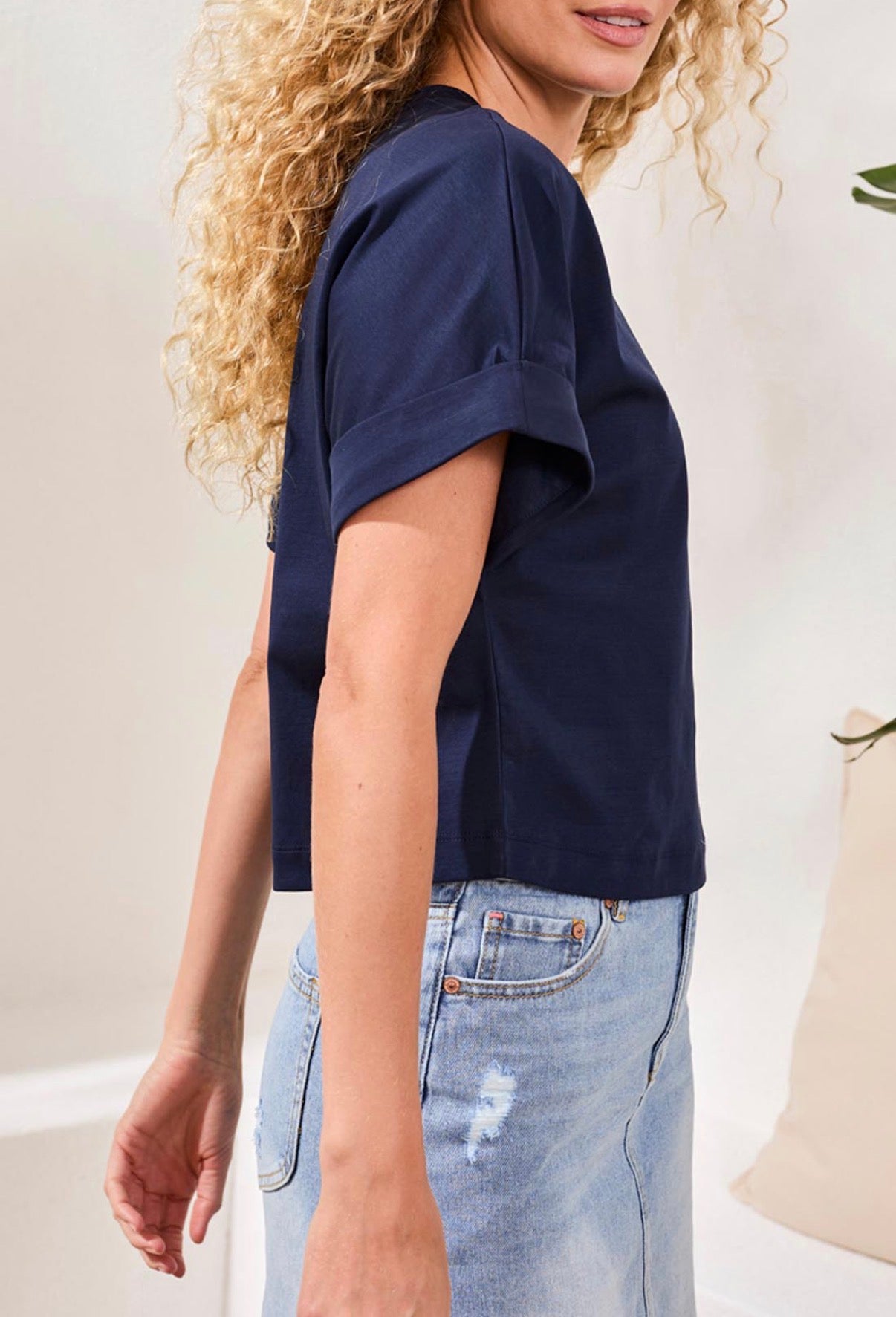 Opt for easy everyday style in this relaxed T-shirt, crafted from soft-touch mercerized cotton knit for ultimate comfort. The loose fit allows for effortless movement, while short cap sleeves keep it feeling trendy. Featuring ladder tape detail at the shoulder seam, this piece elevates your casual look with a refined touch.