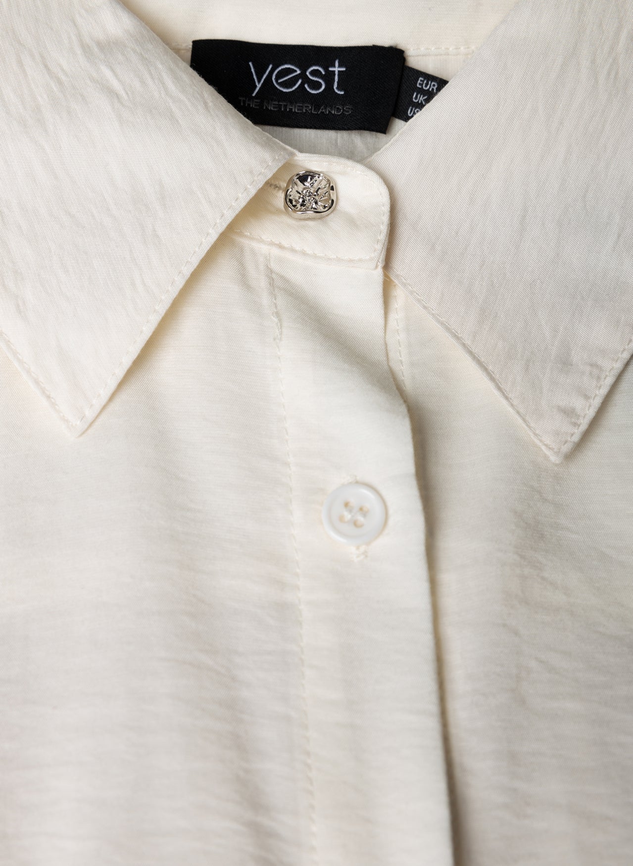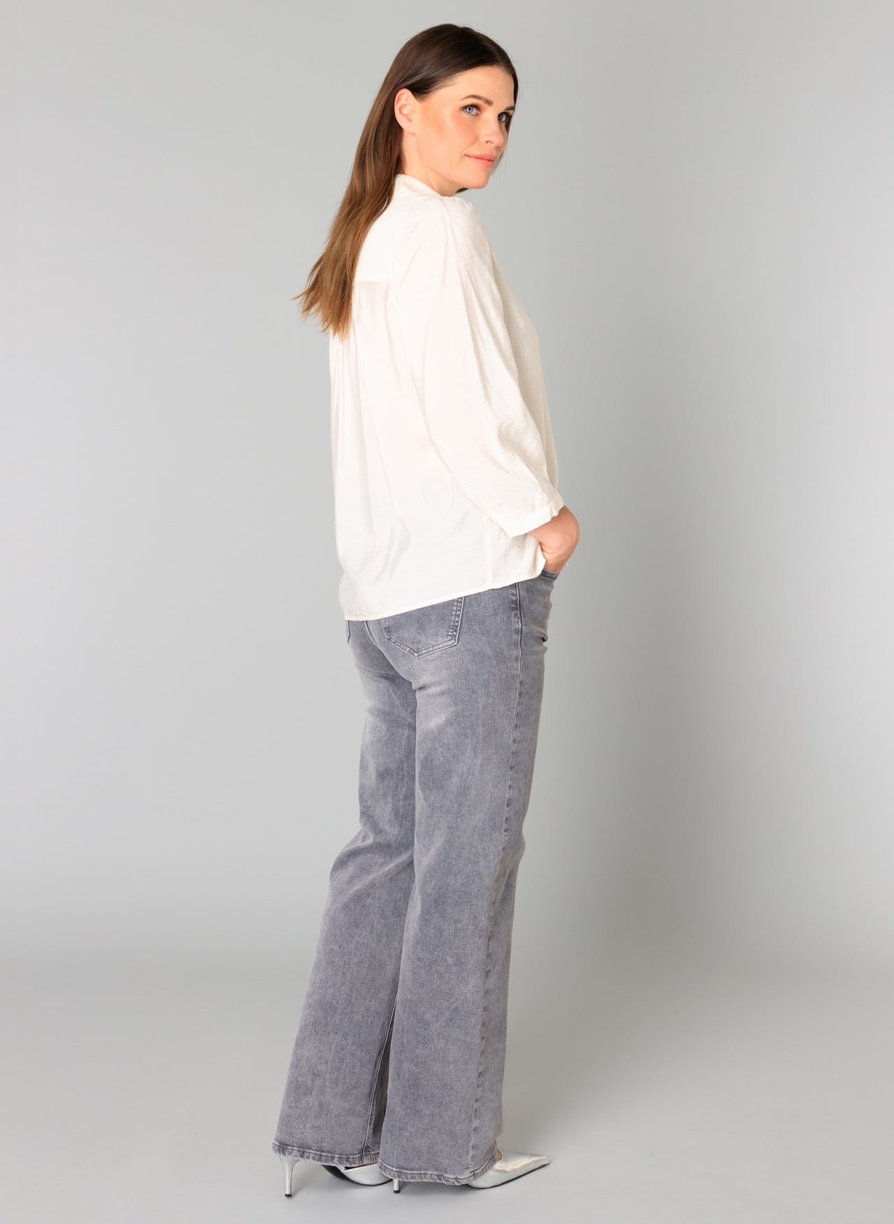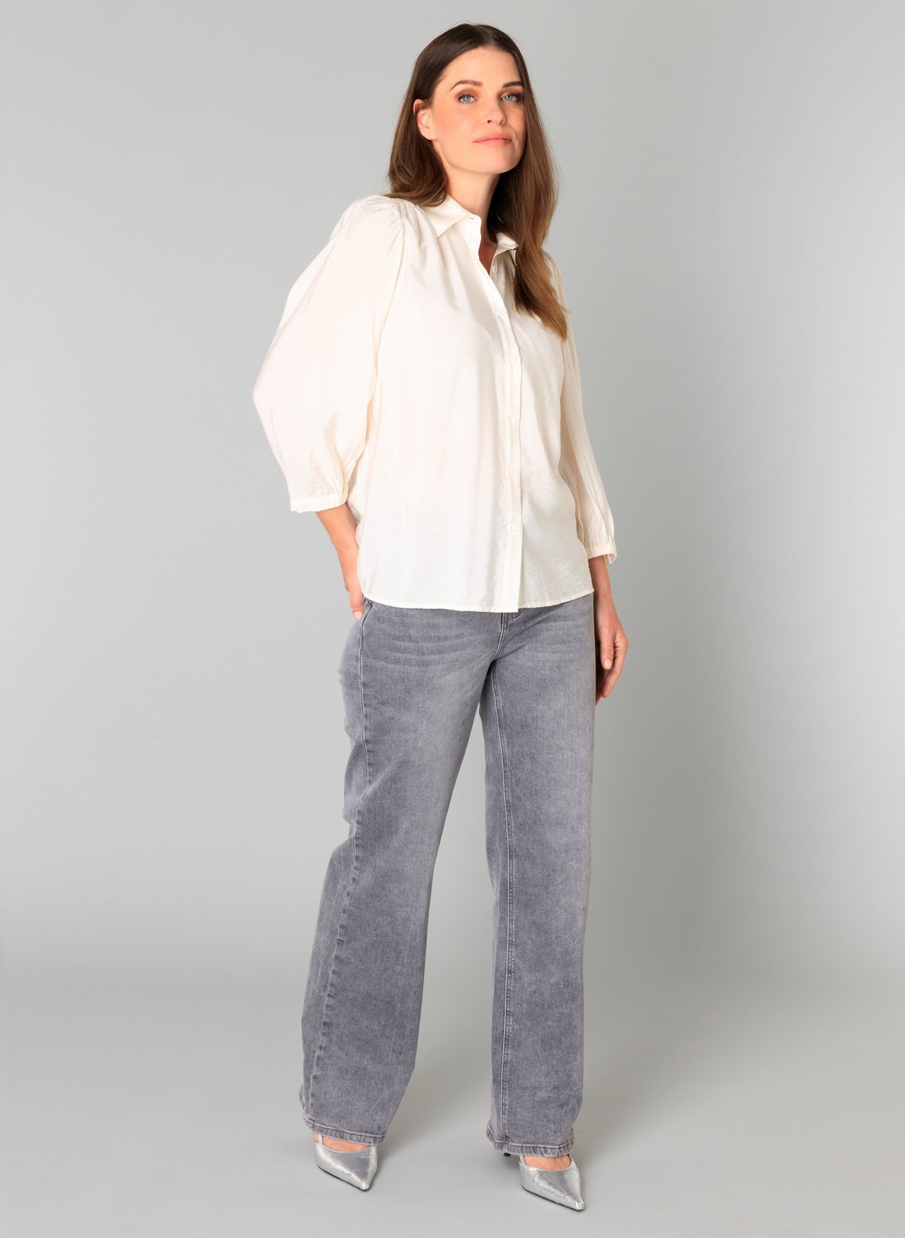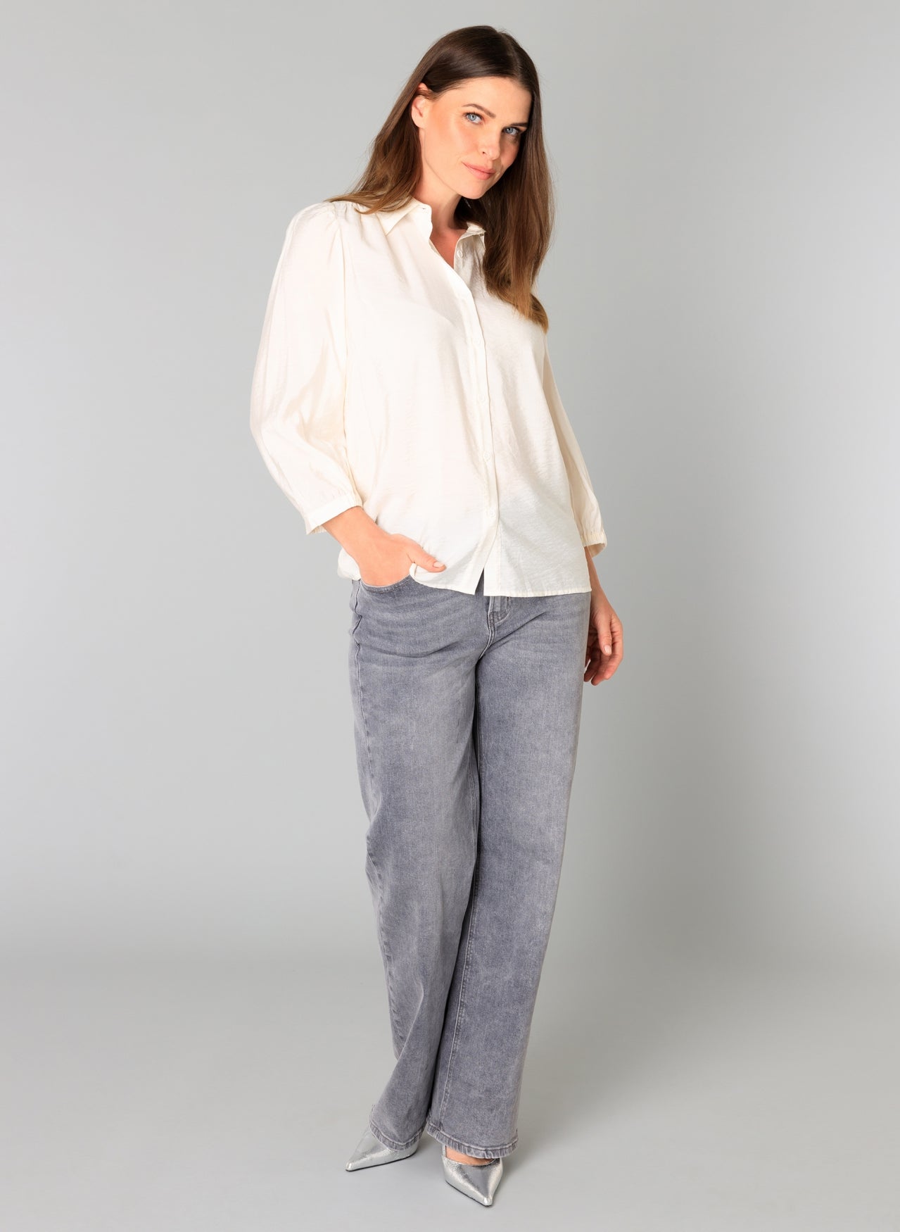 With this off-white blouse with puff sleeves, you choose comfort and style. The supple viscose-nylon blend feels light to the touch and provides a beautiful, soft feel