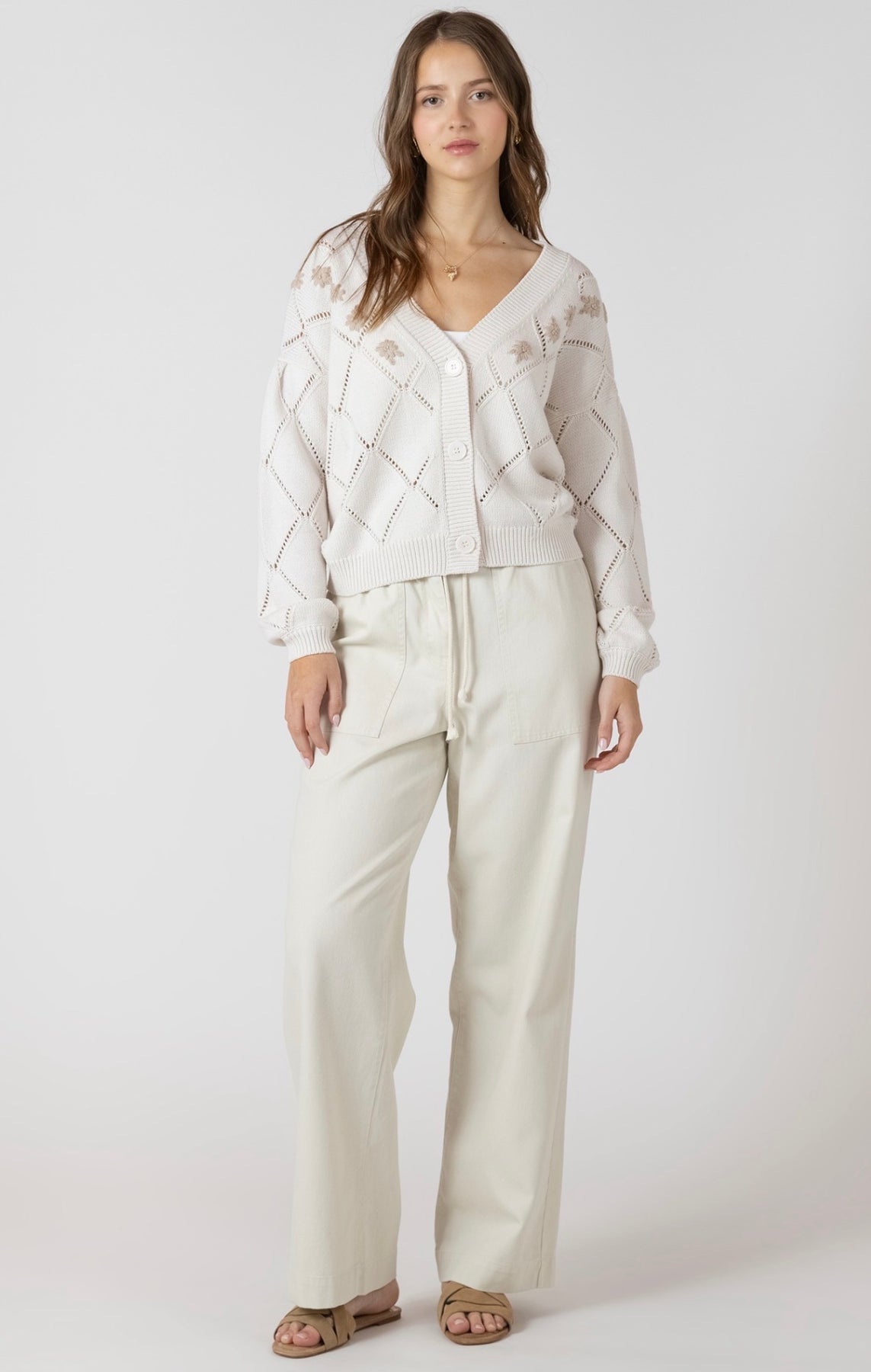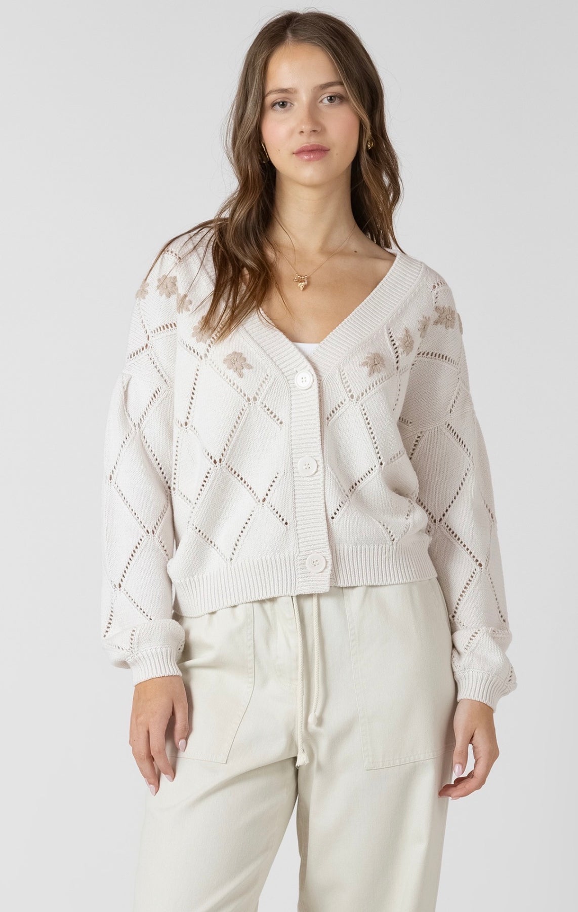 Natural knit pointelle cardigan