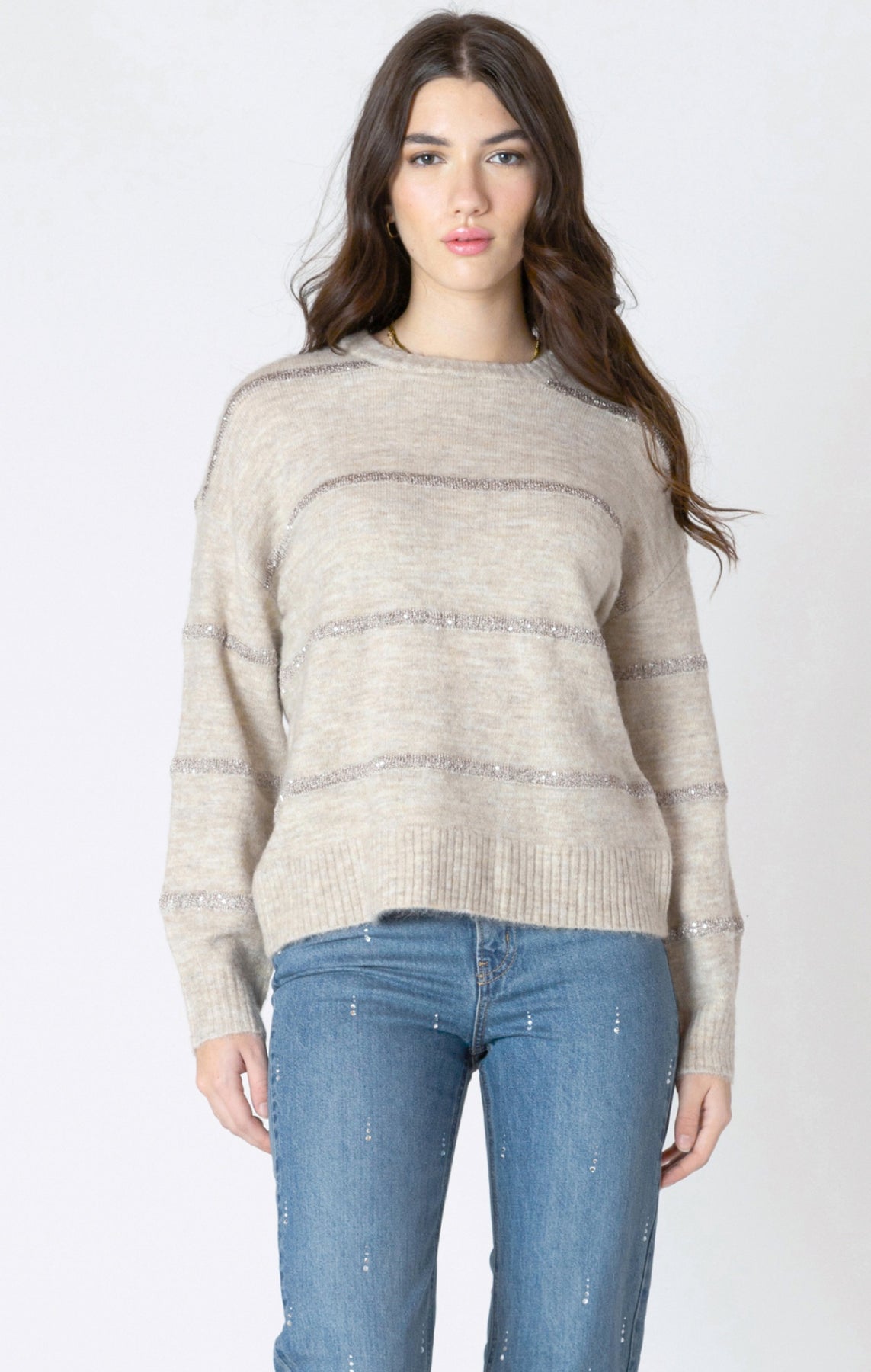 Oat knit sweater with sequin stripes